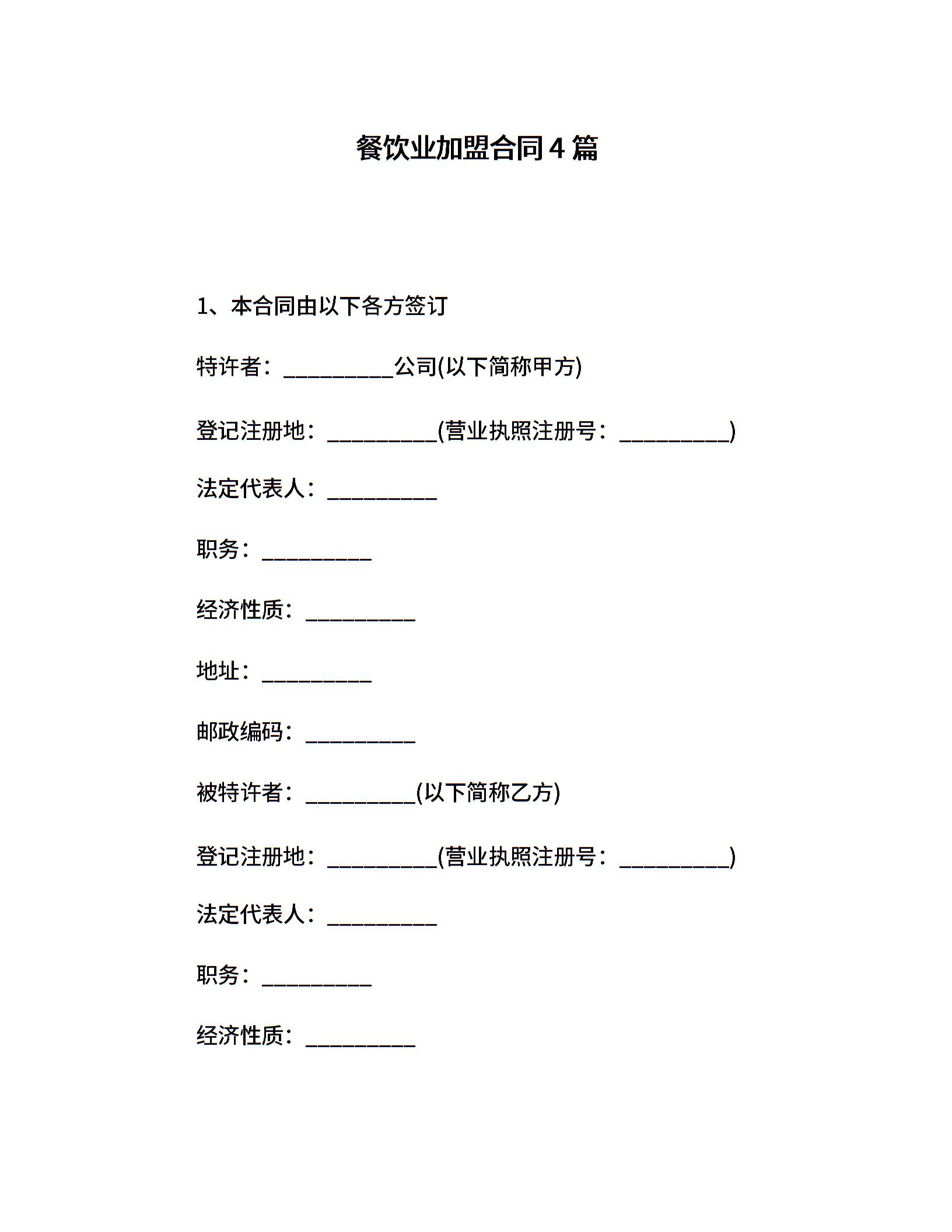 餐饮业加盟合同4篇