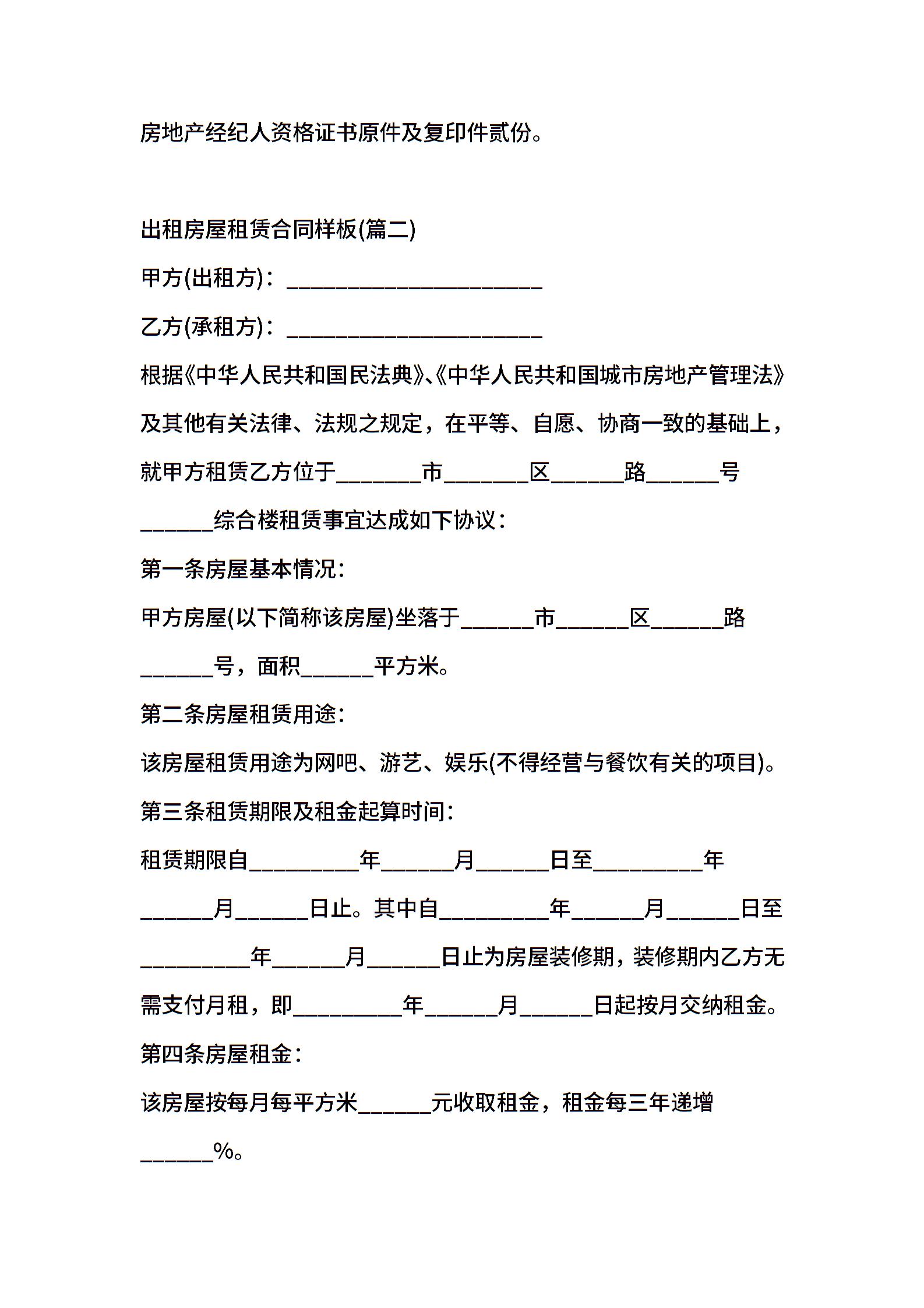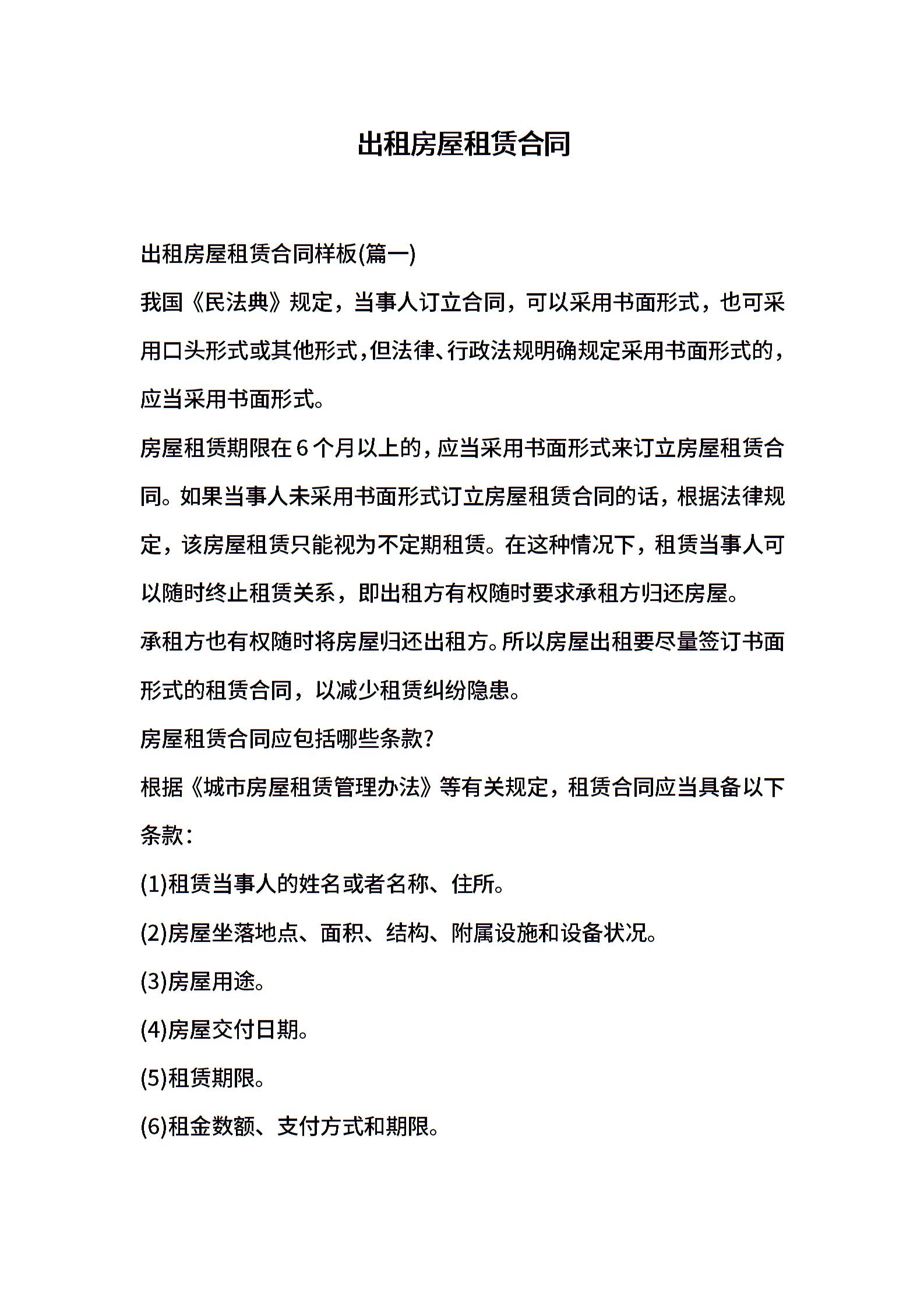 出租房屋租赁合同