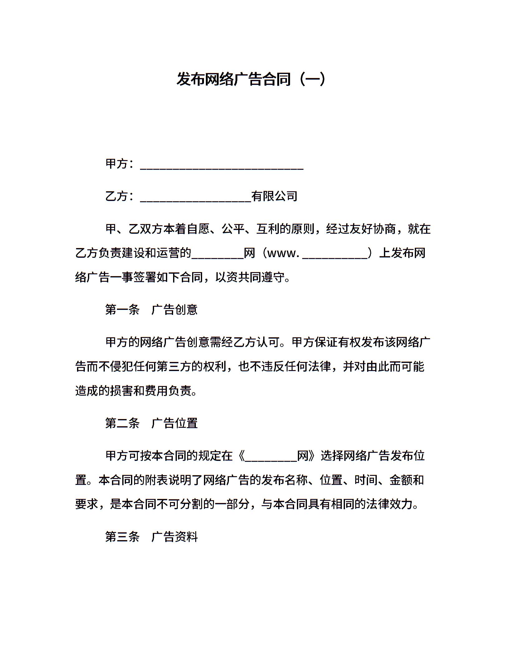 发布网络广告合同(一)
