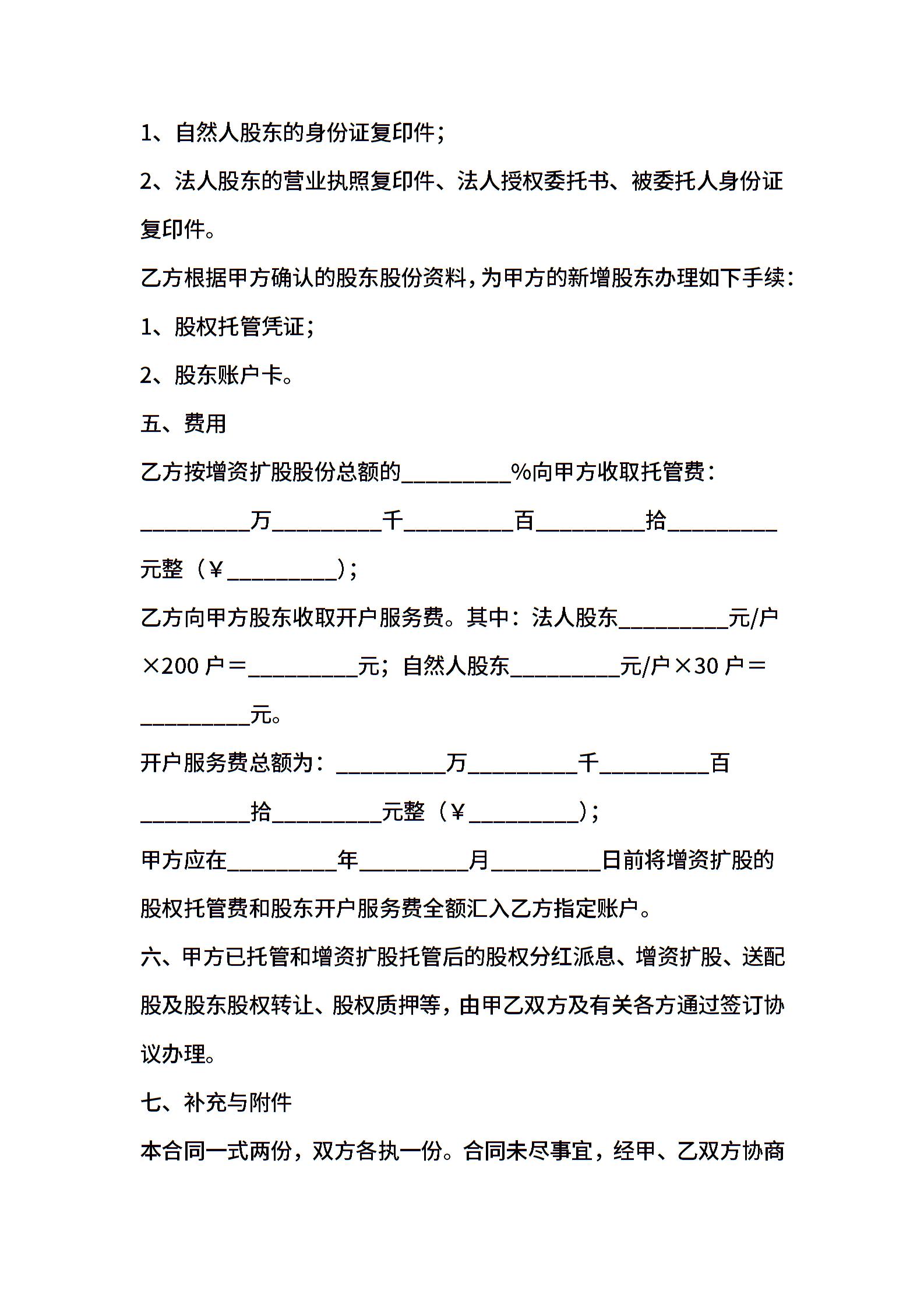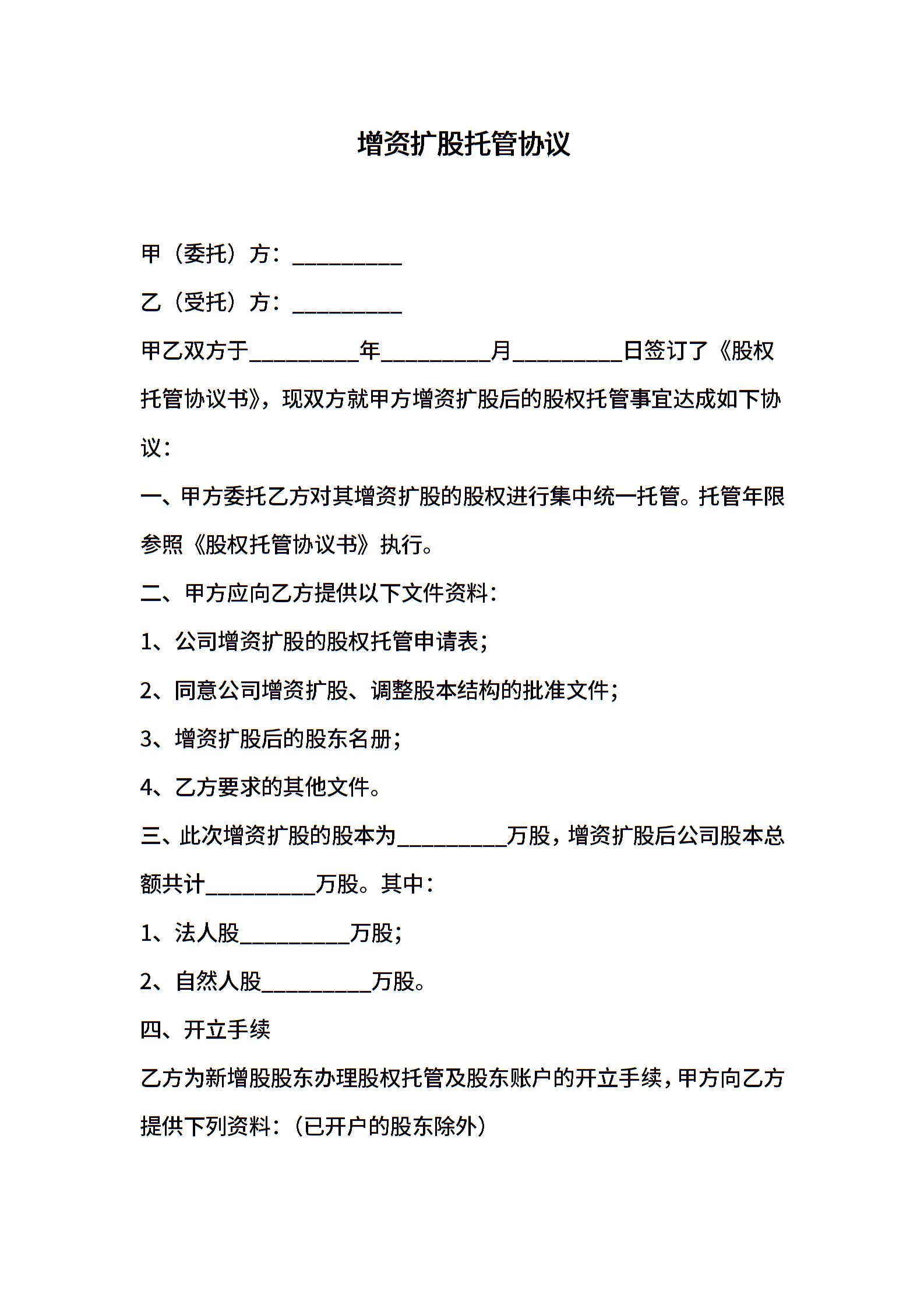 增资扩股托管协议