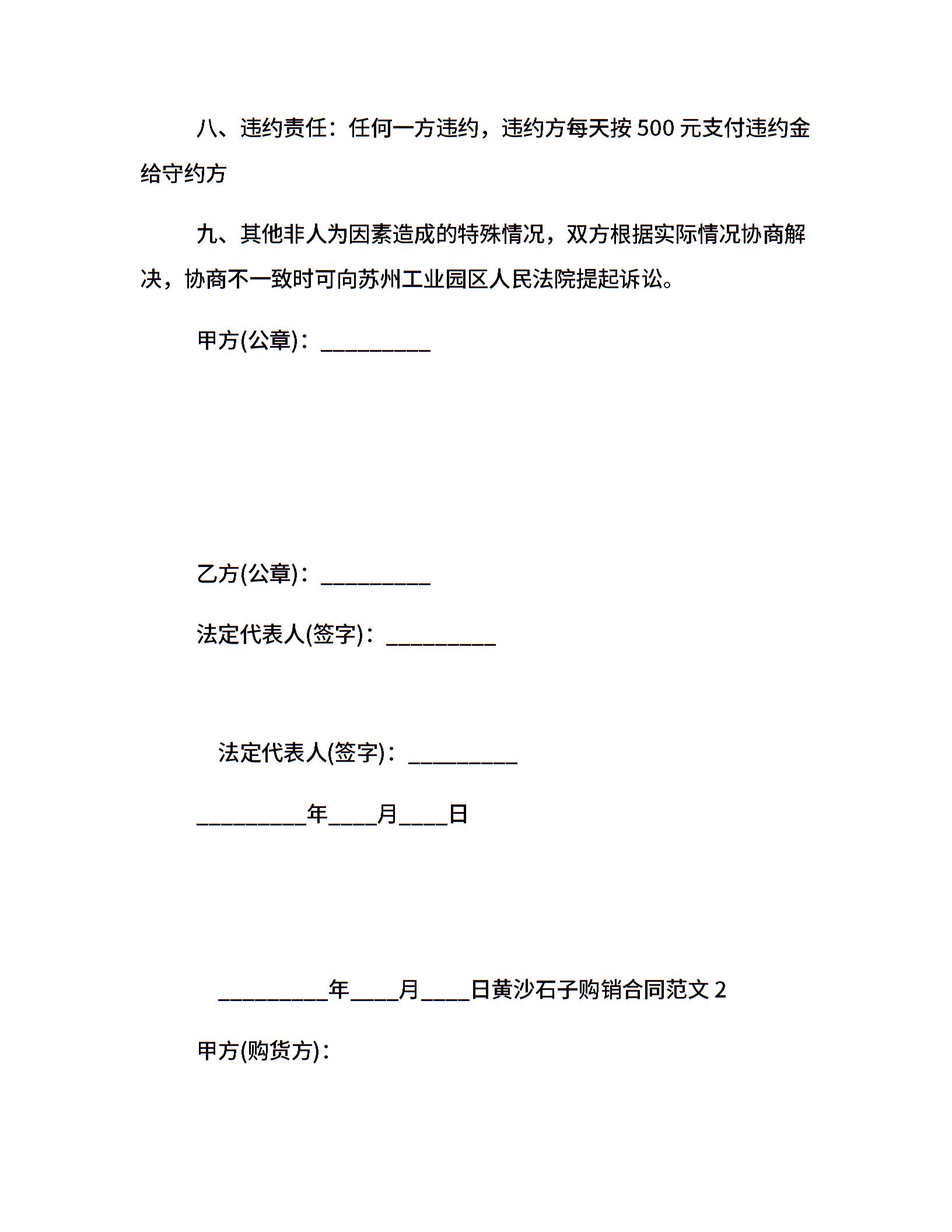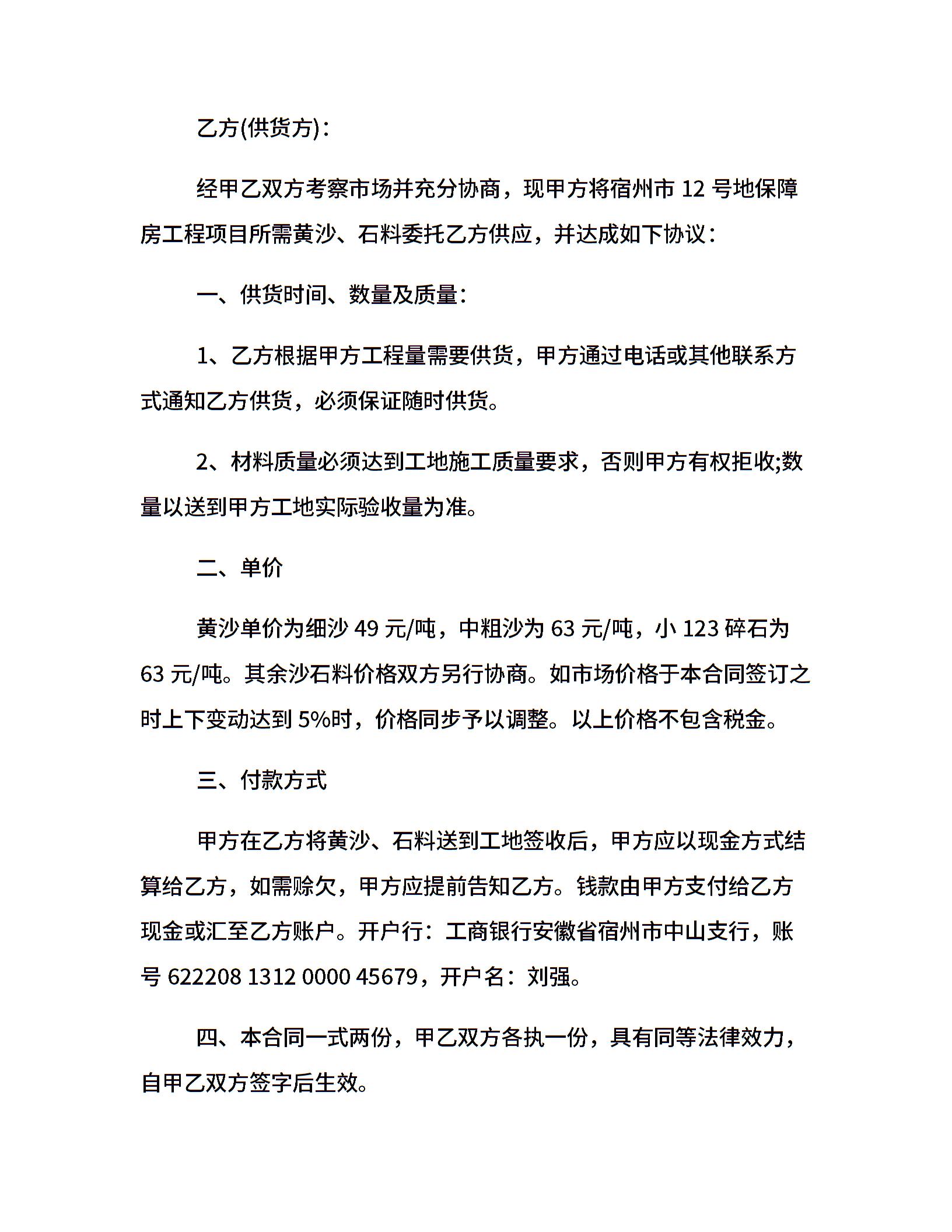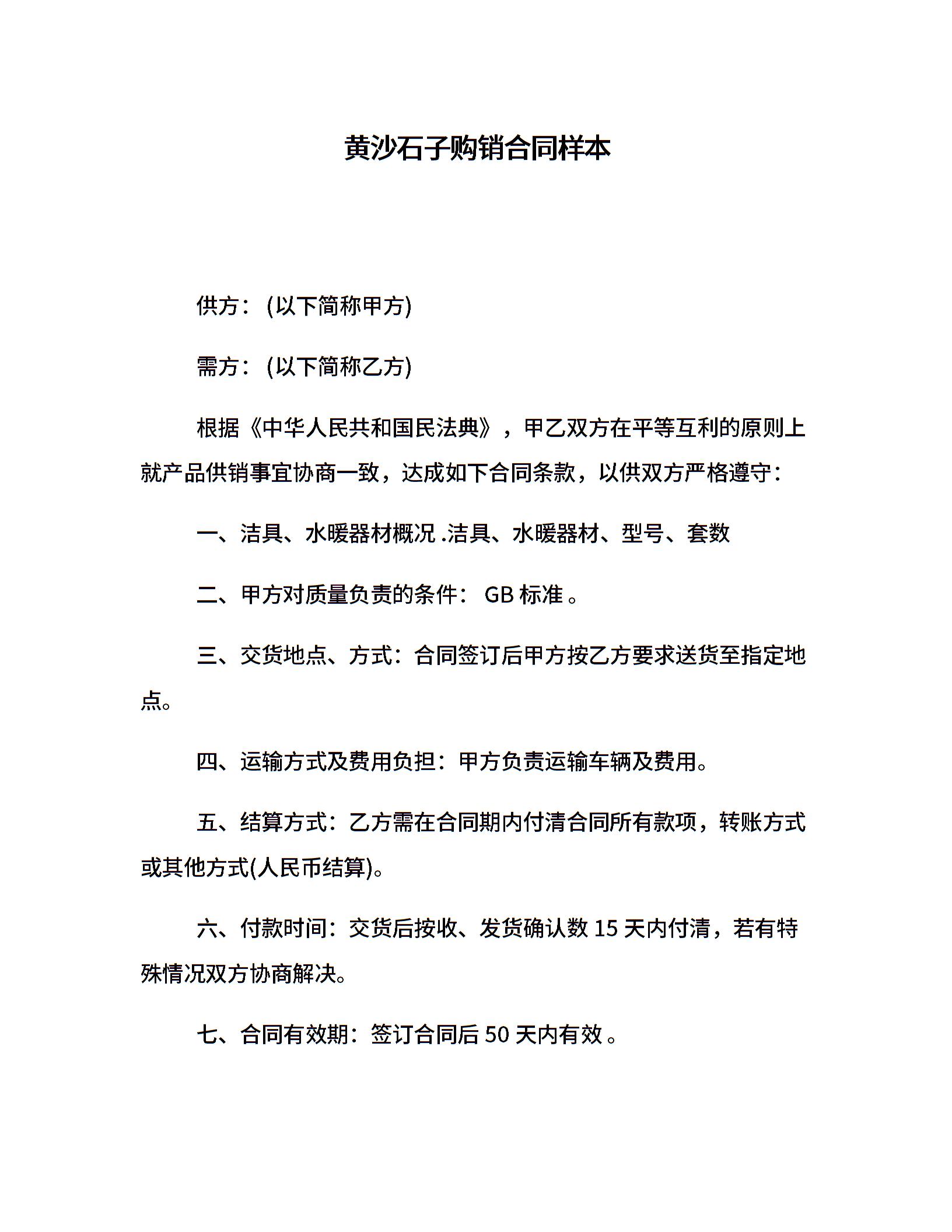 黄沙石子购销合同样本