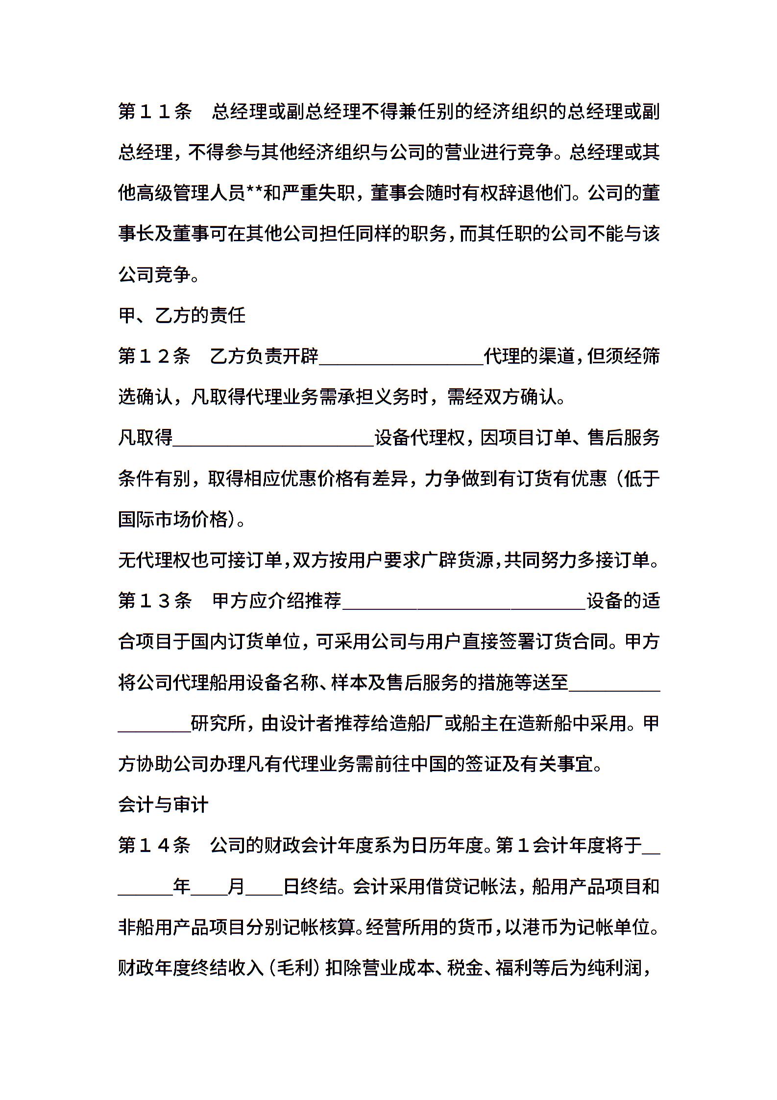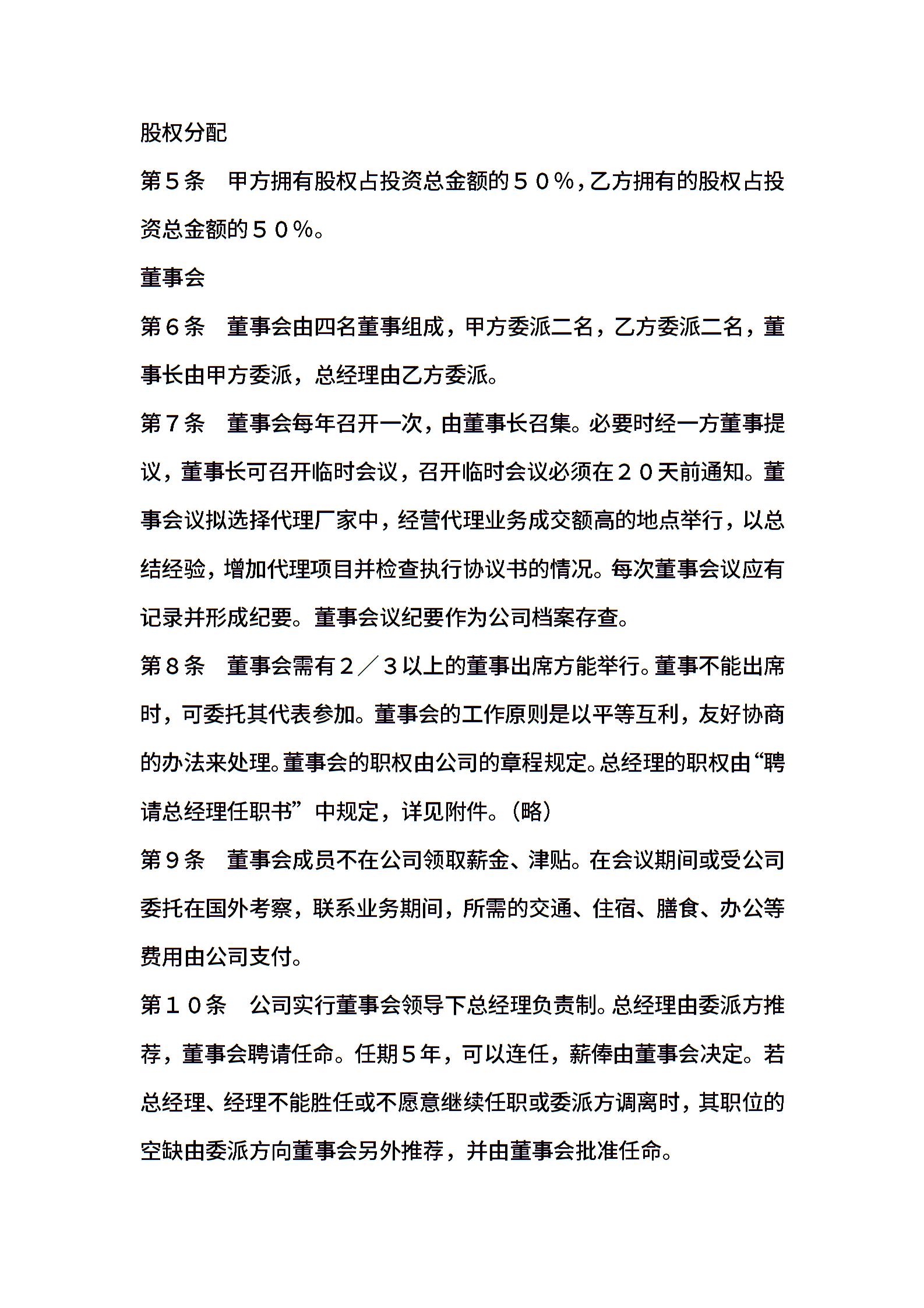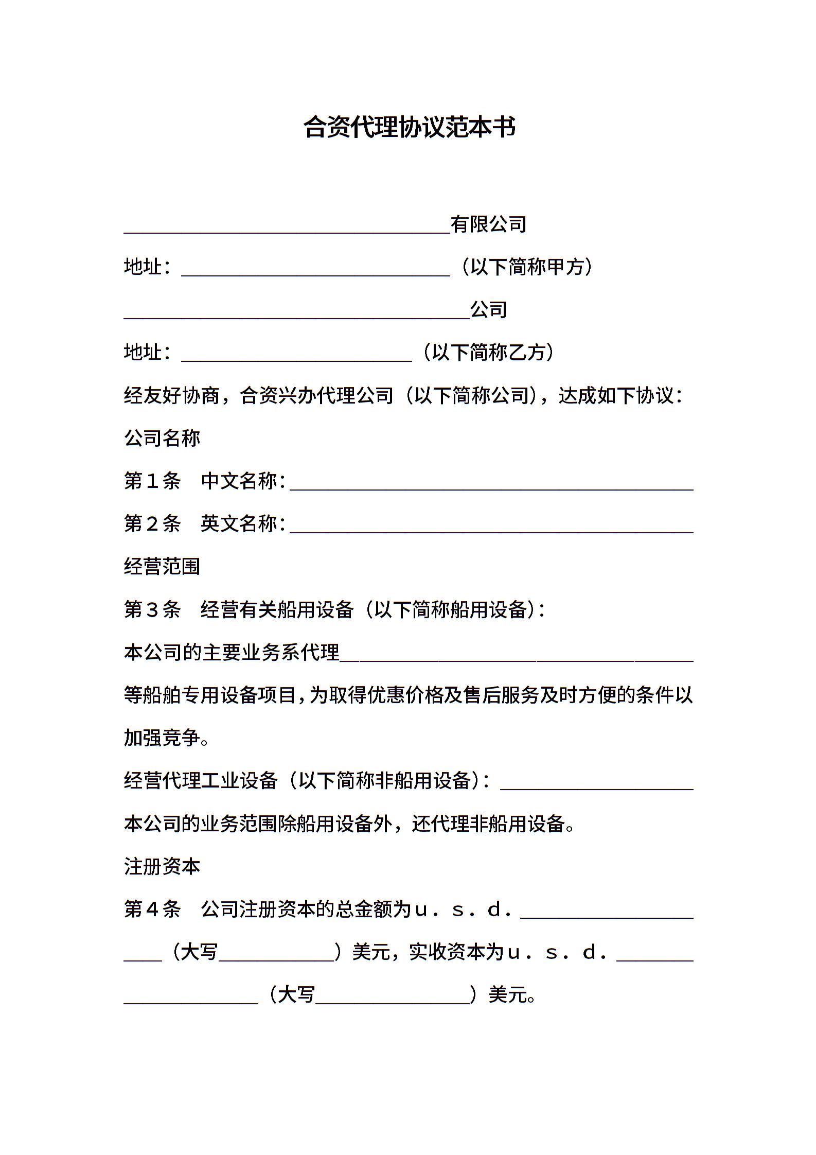 合资代理协议范本书