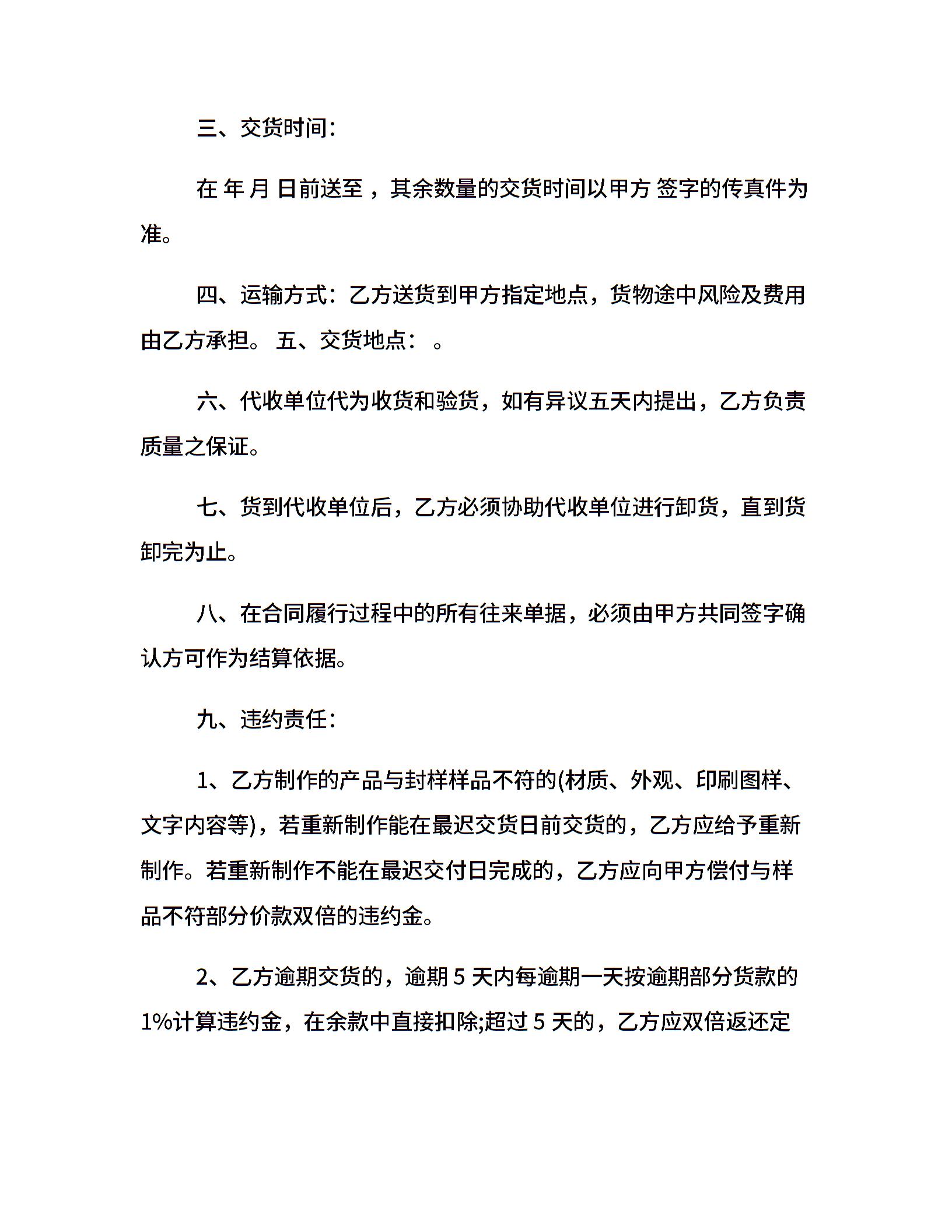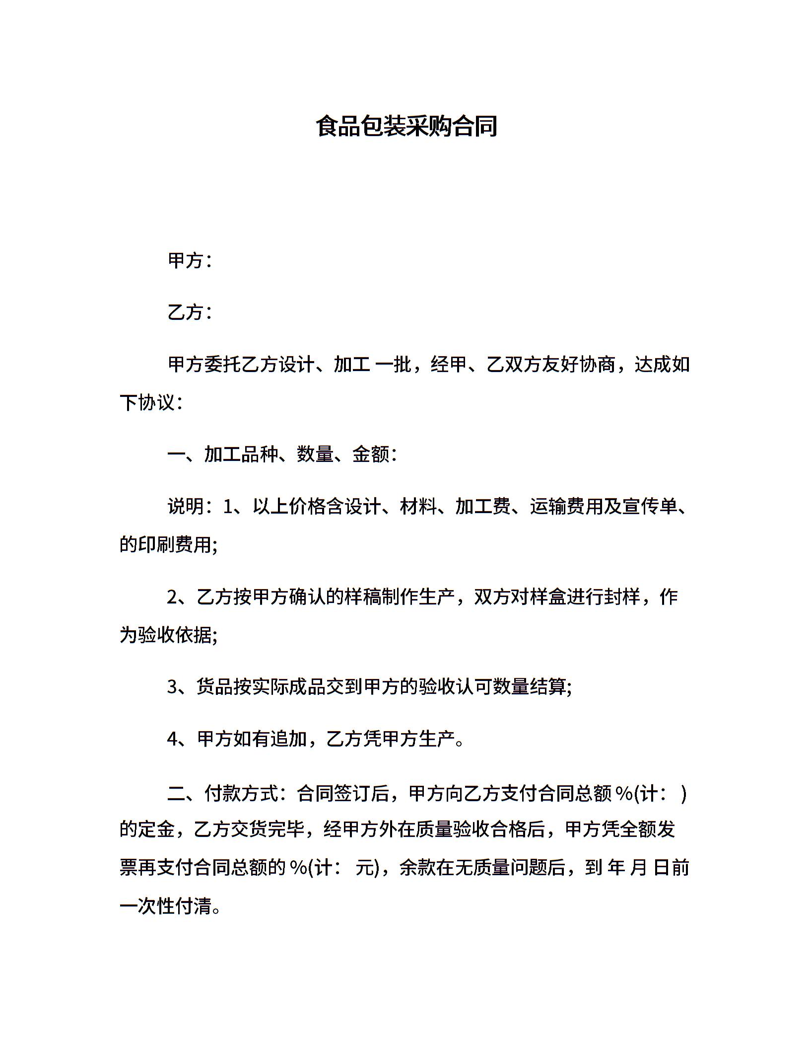 食品包装采购合同