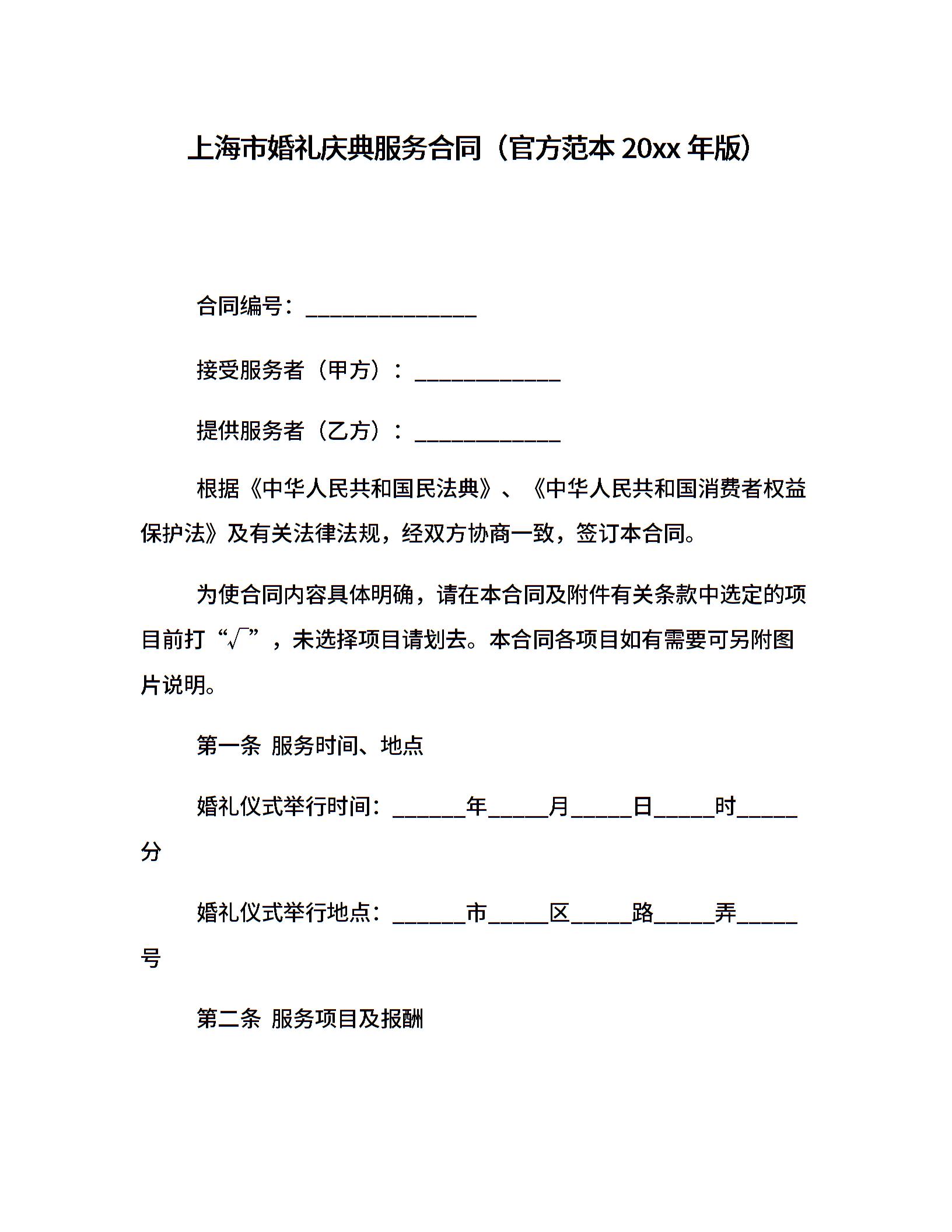 上海市婚礼庆典服务合同(官方范本20xx年版)