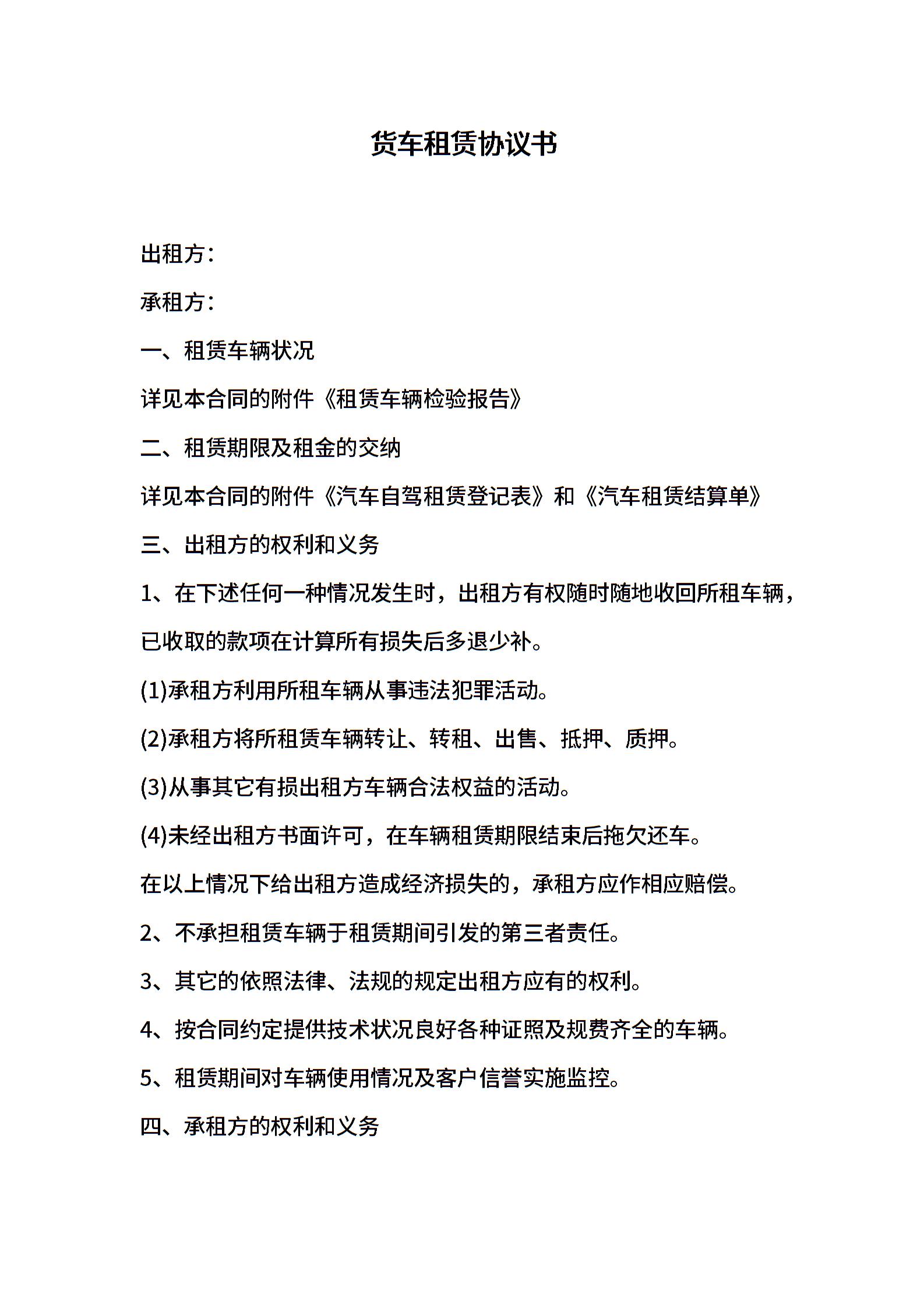 货车租赁协议书