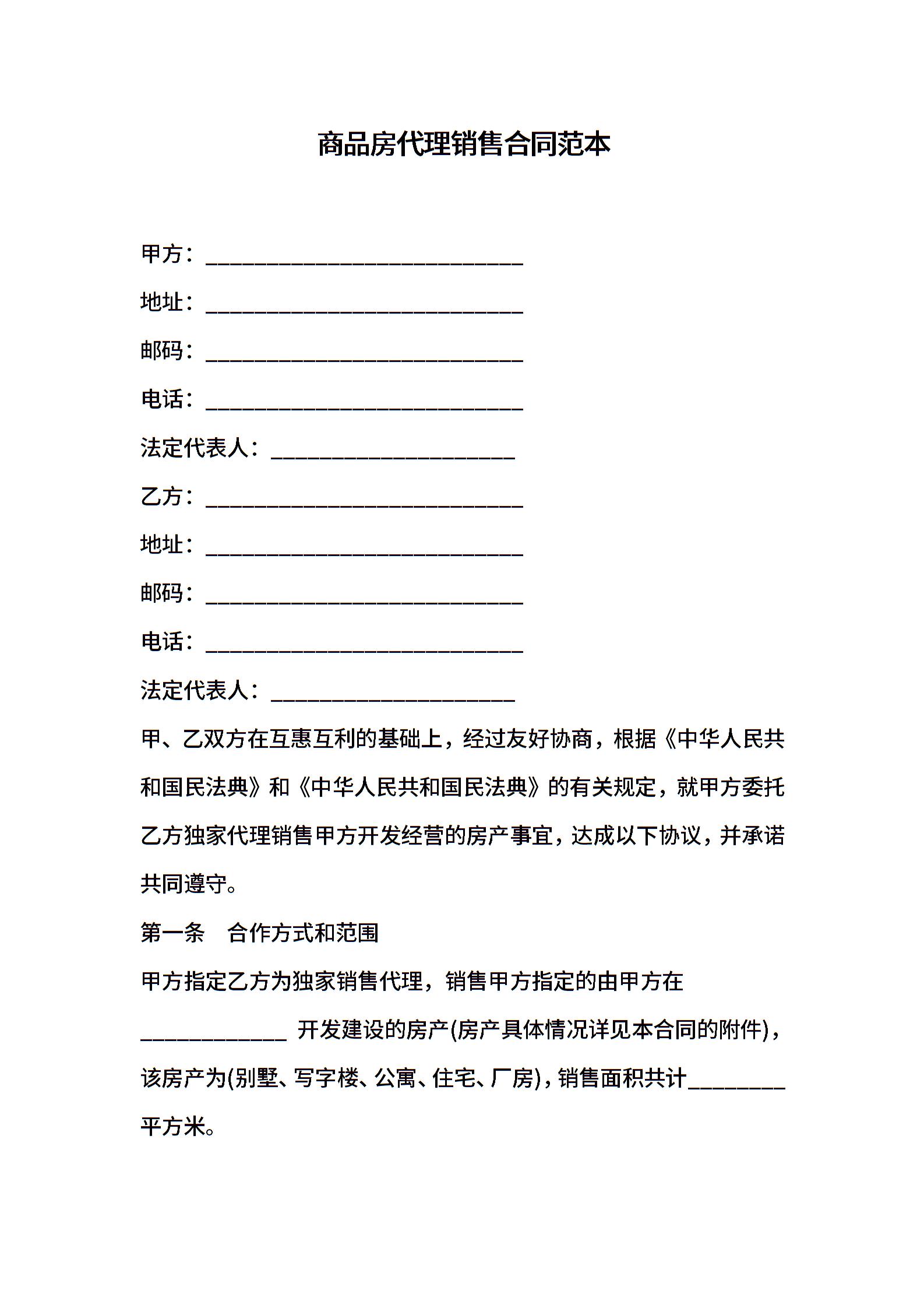 商品房代理销售合同范本