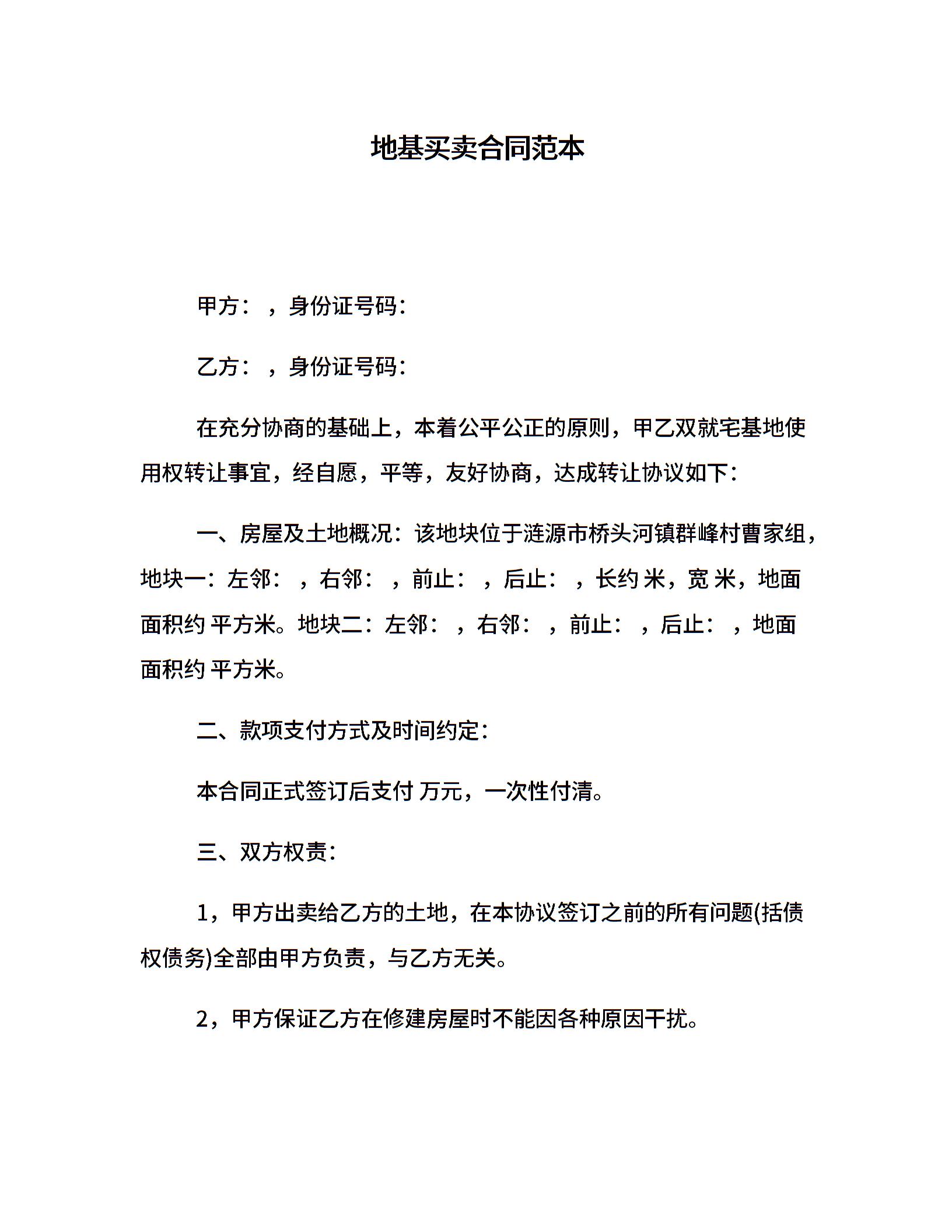 地基买卖合同范本