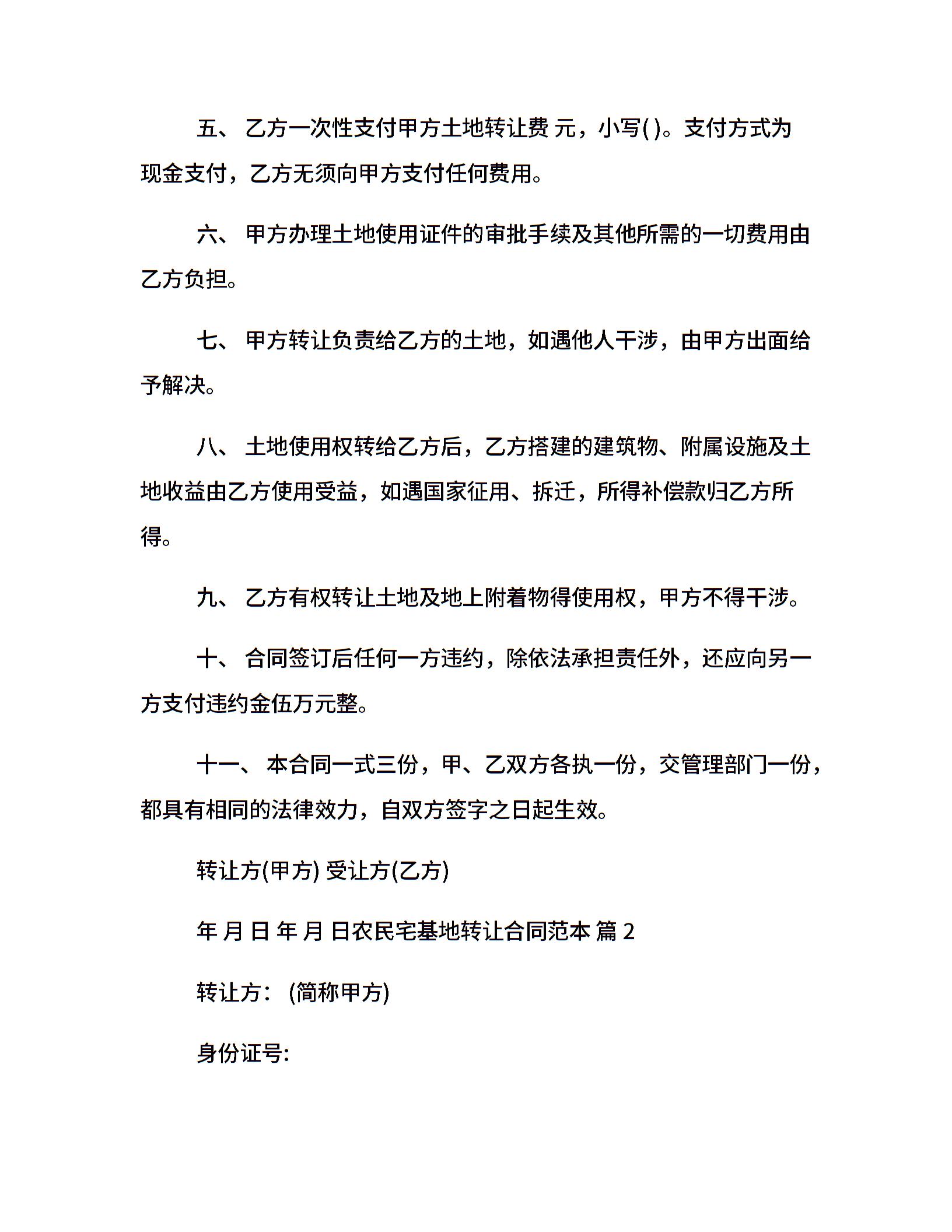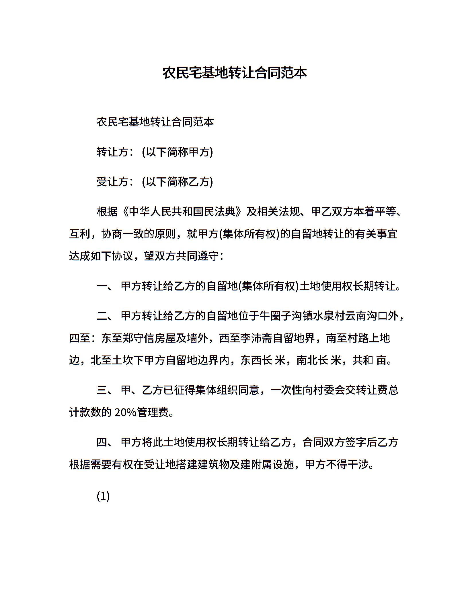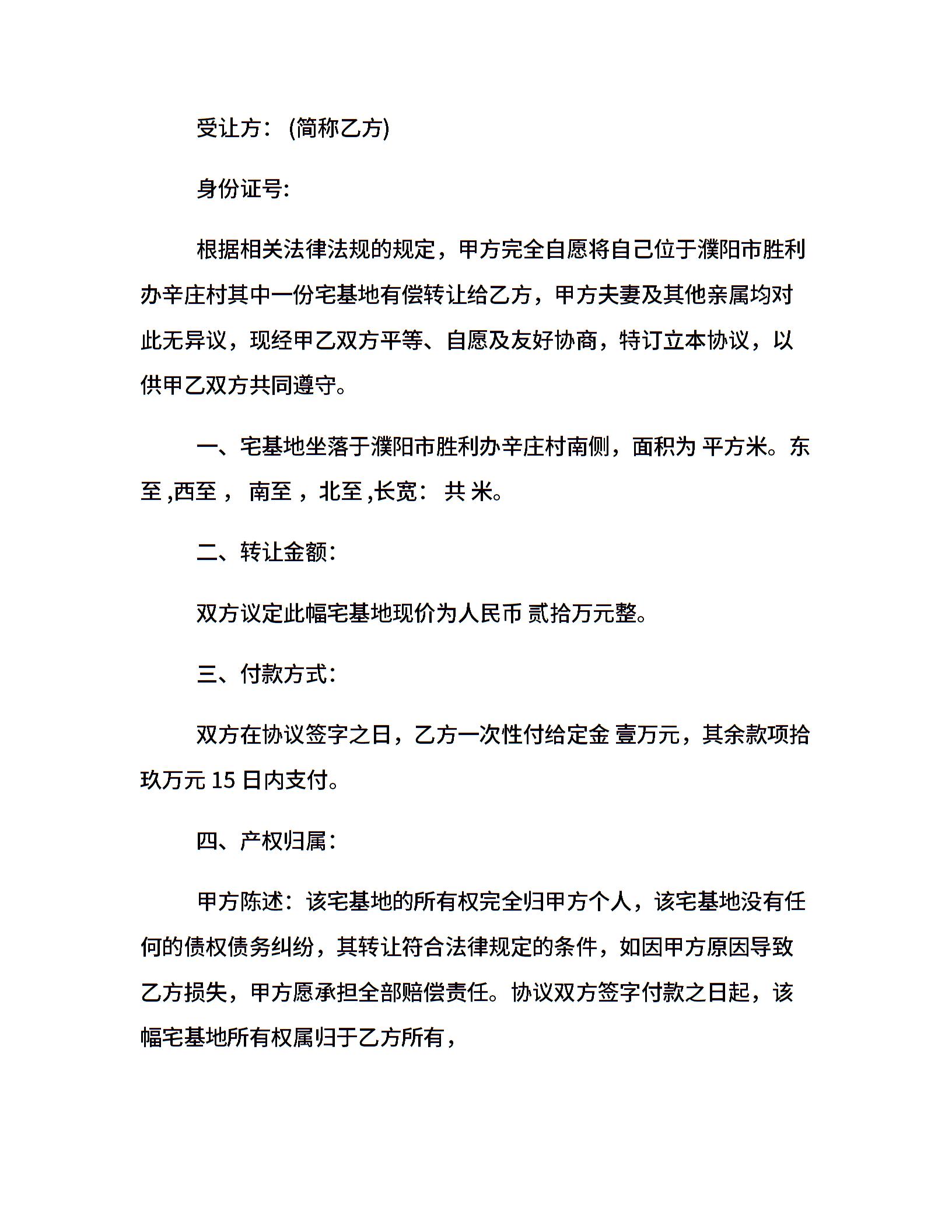 农民宅基地转让合同范本
