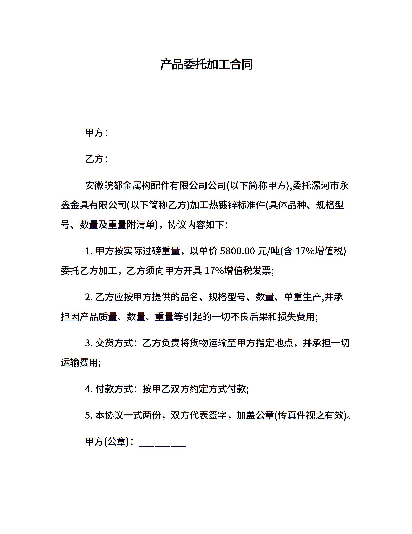 产品委托加工合同