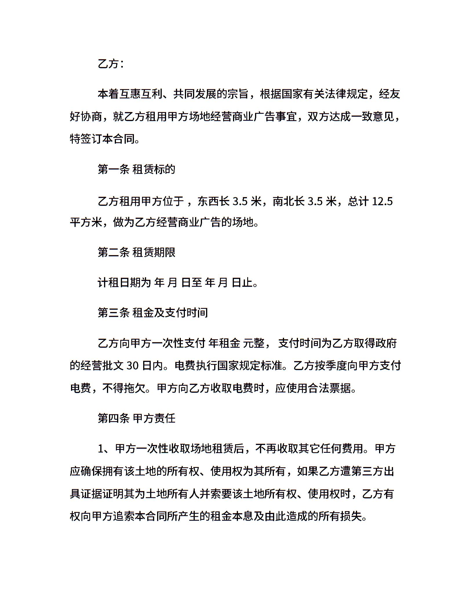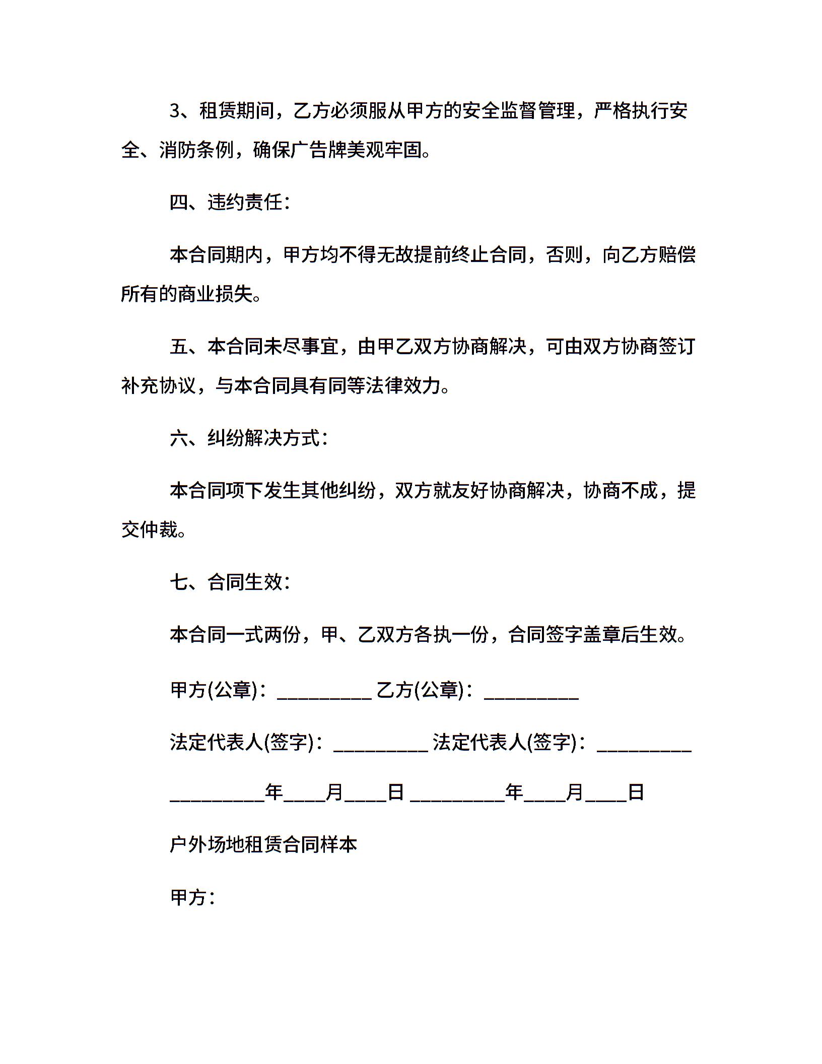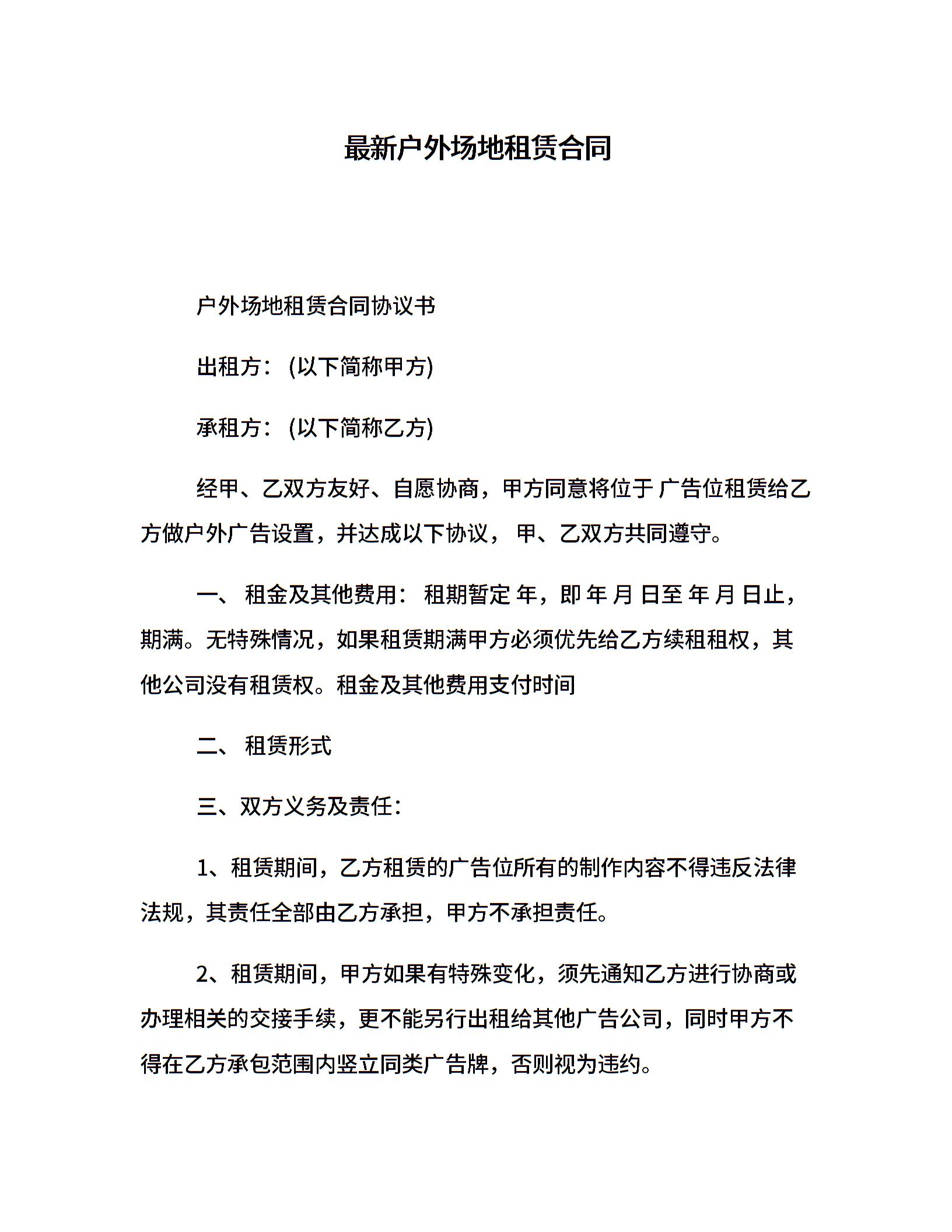 最新户外场地租赁合同