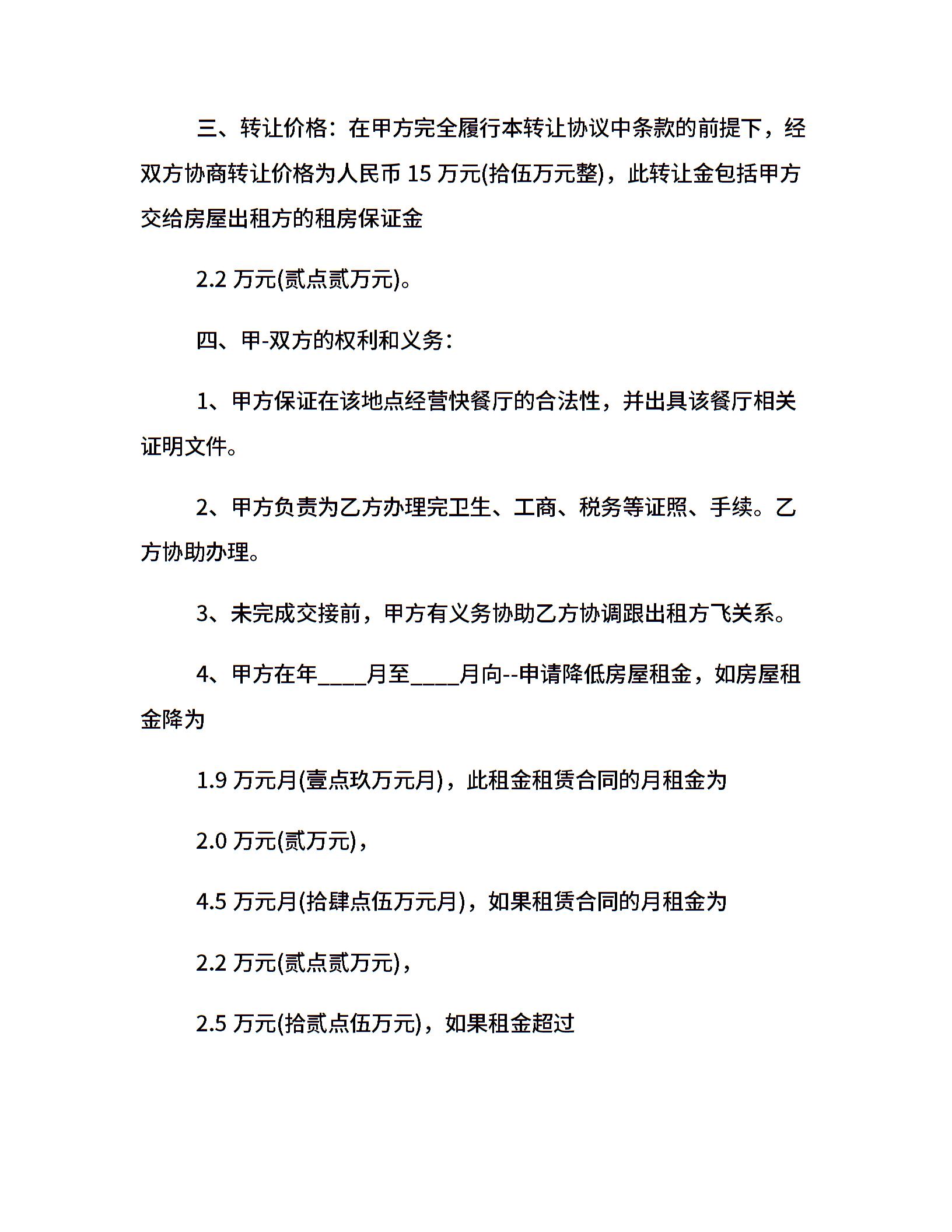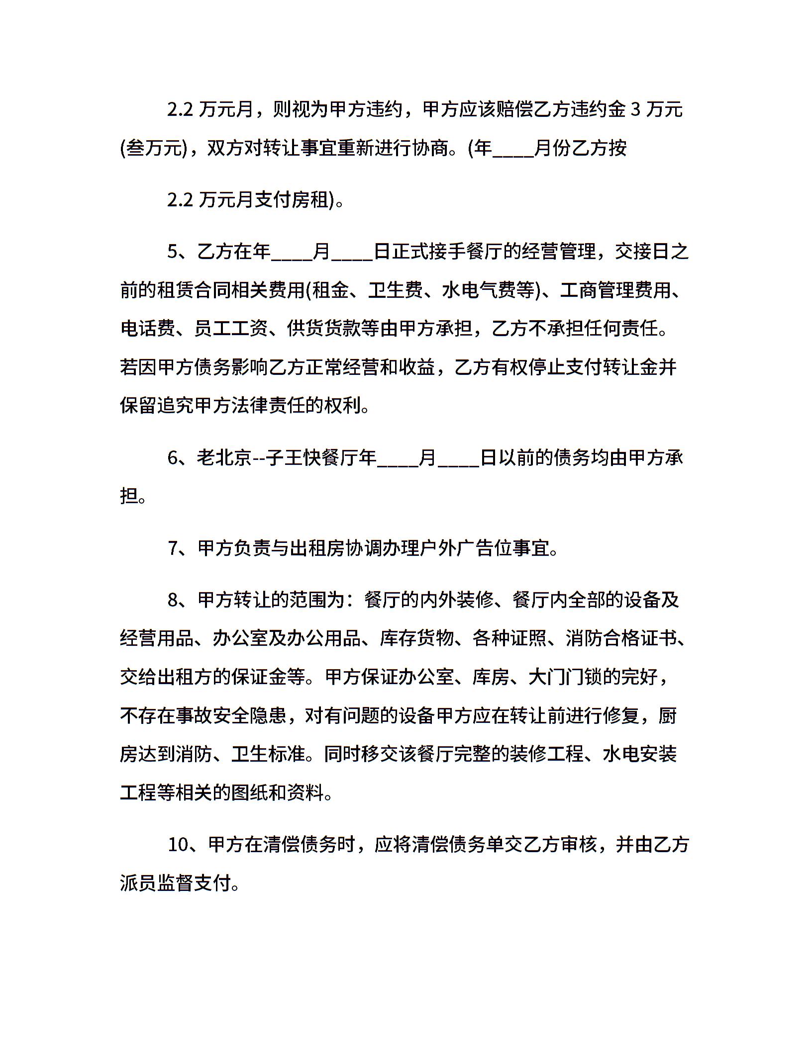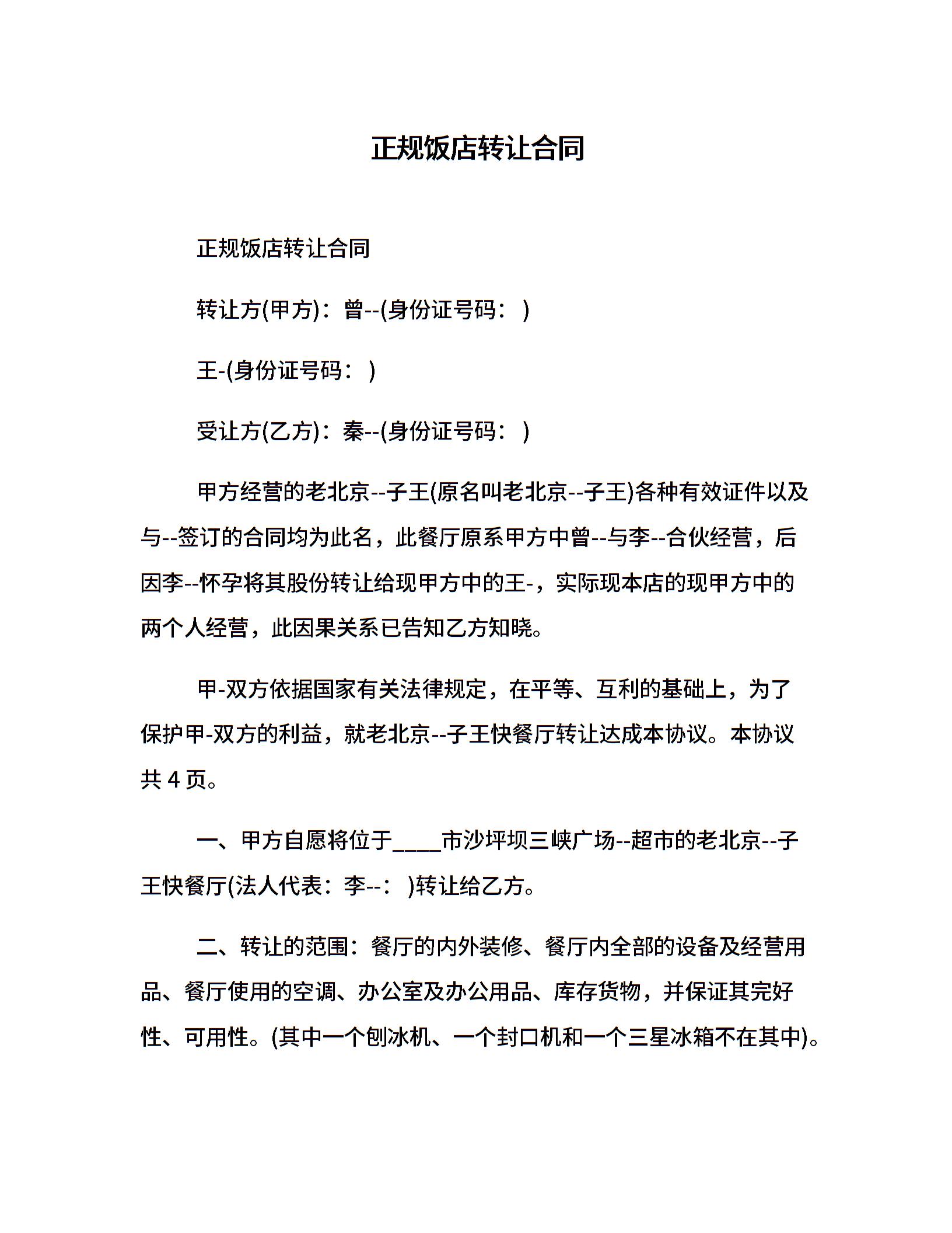 正规饭店转让合同