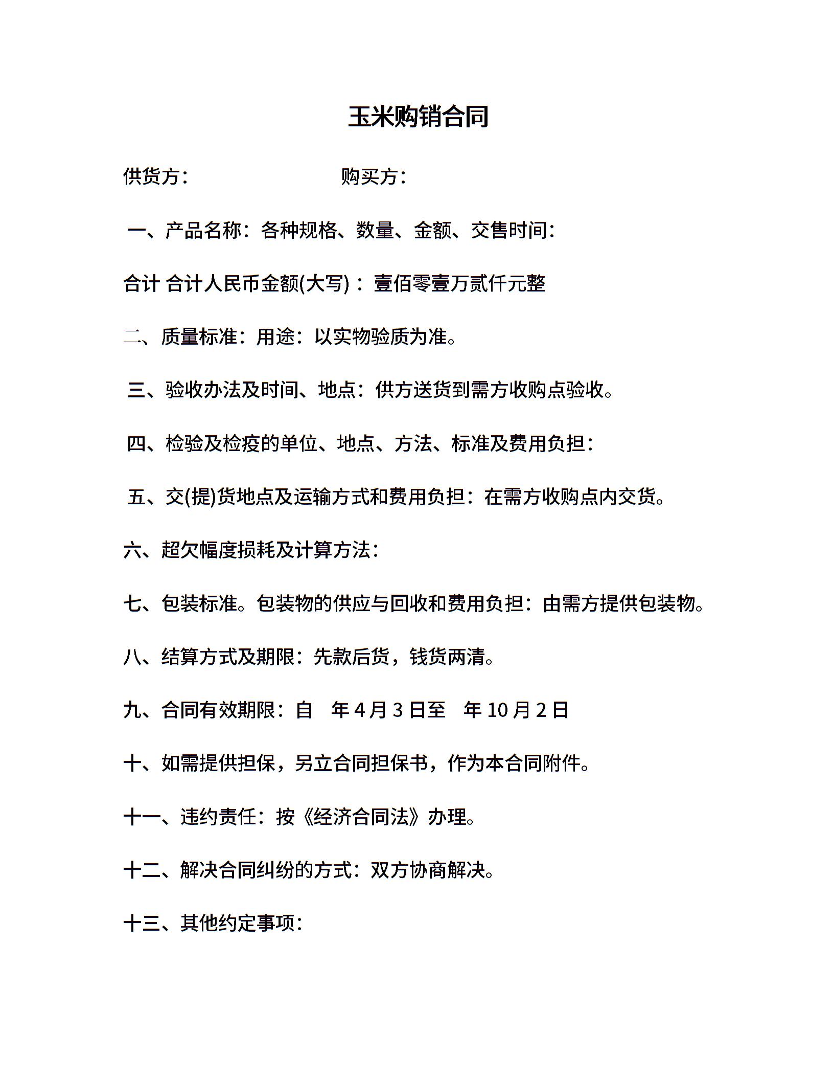 玉米购销合同