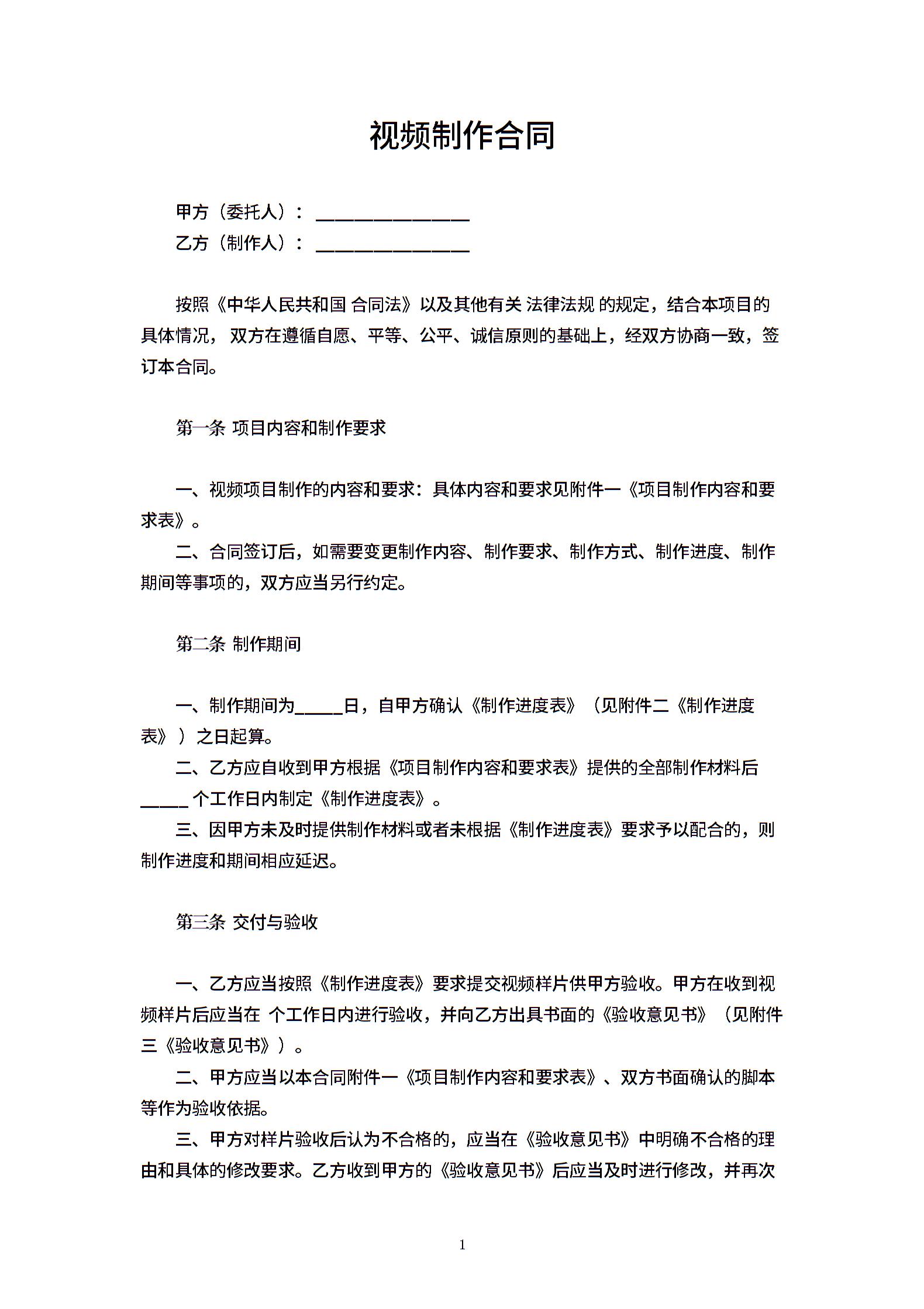 视频制作合同