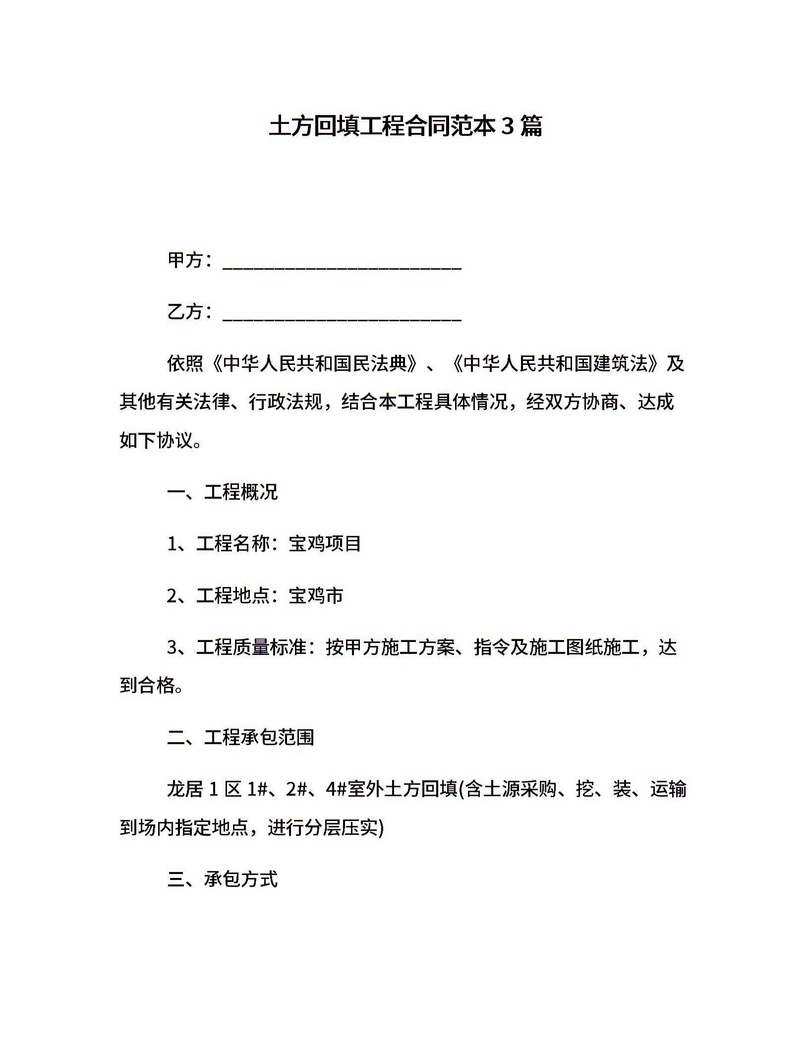土方回填工程合同范本3篇
