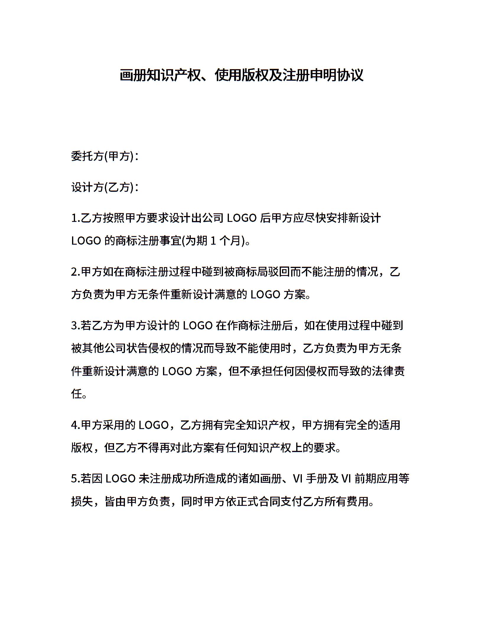 画册知识产权、使用版权及注册申明协议