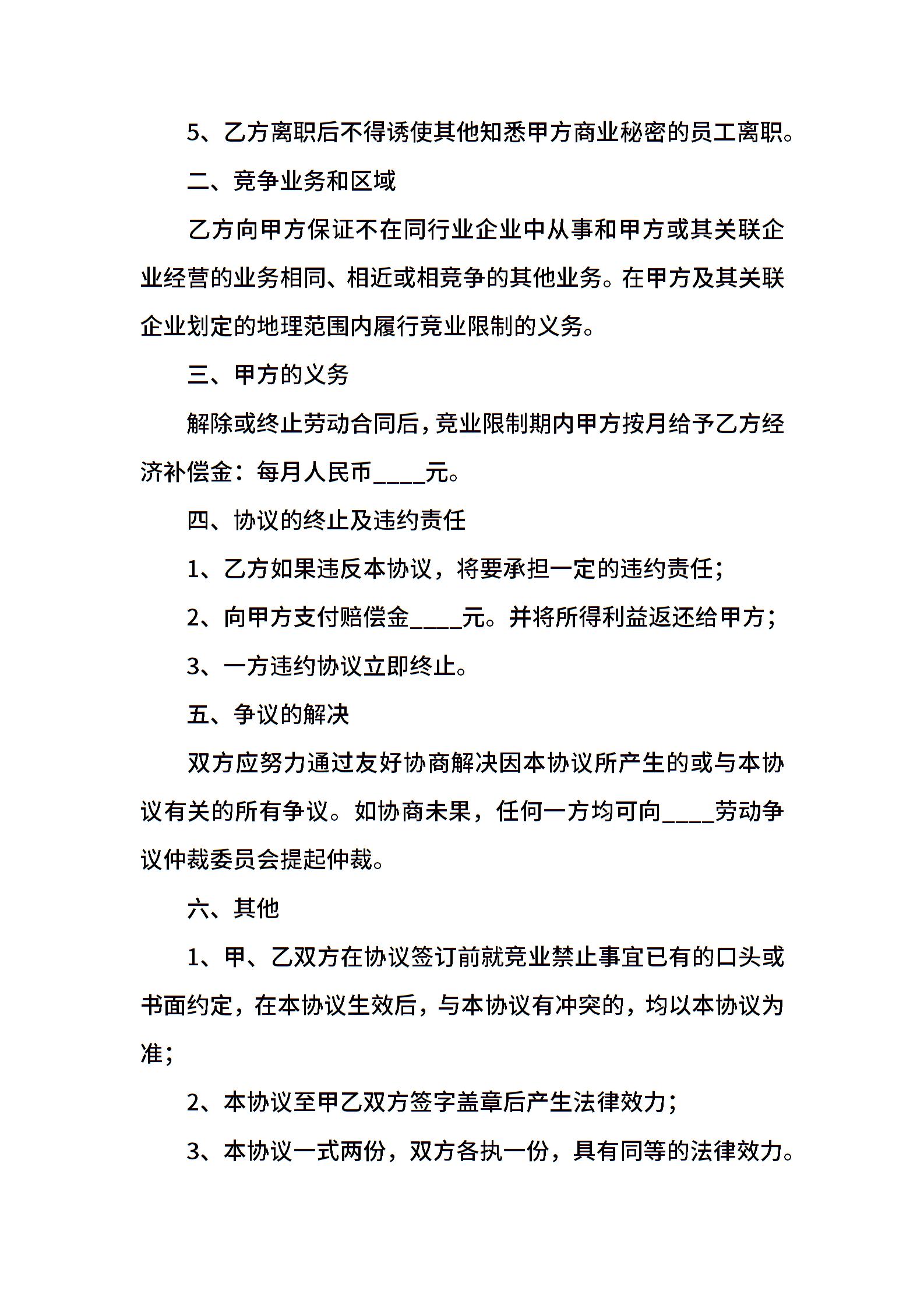 • 分类 竞业协议