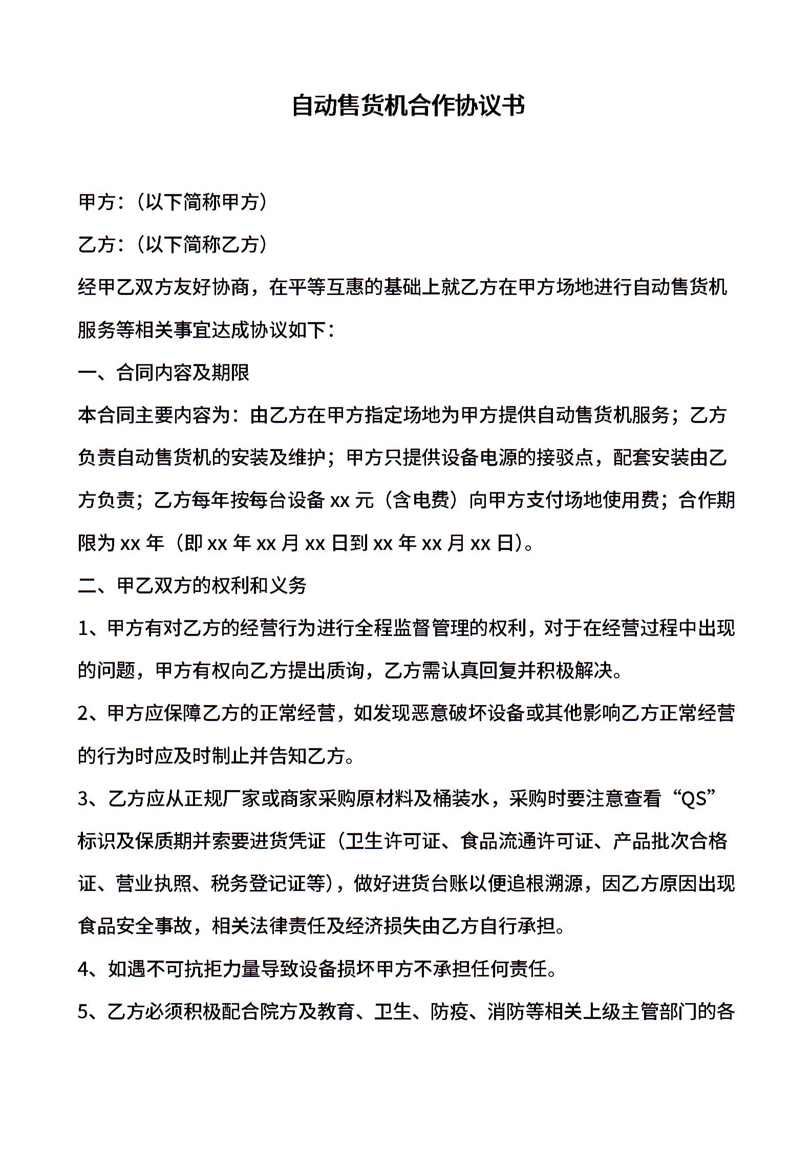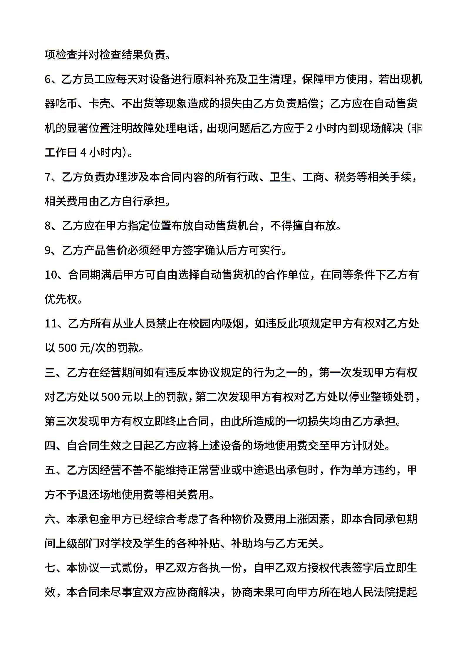 高校自动售货机布放合同