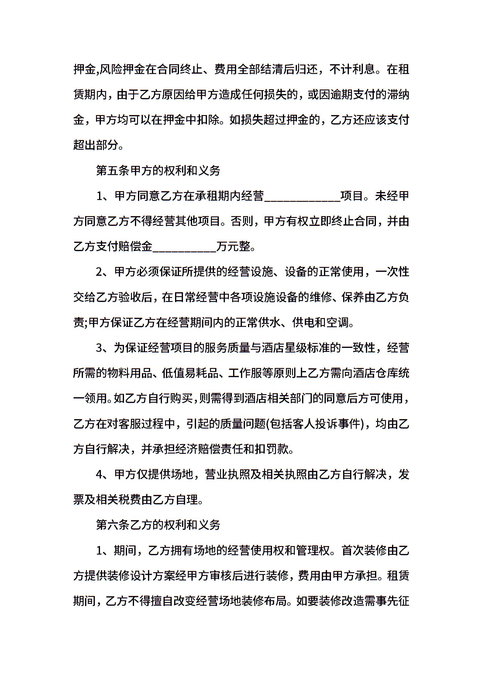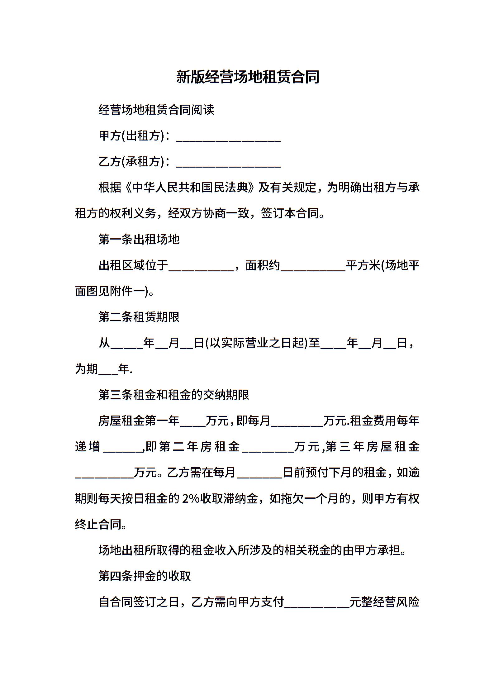 新版经营场地租赁合同
