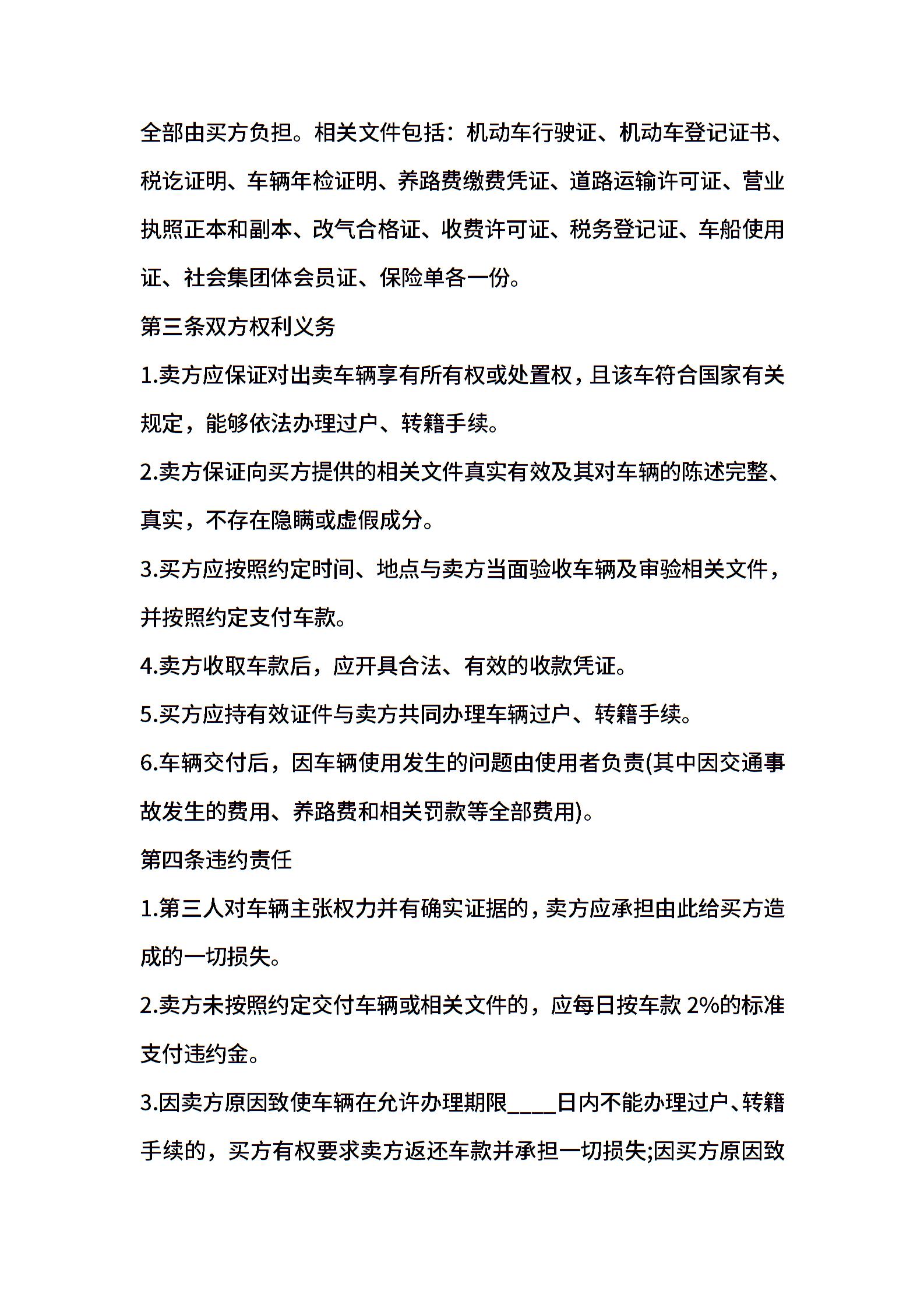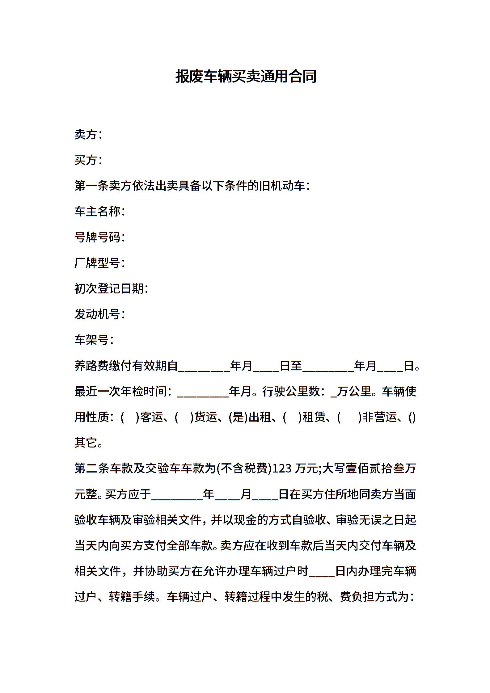 报废车辆买卖通用合同