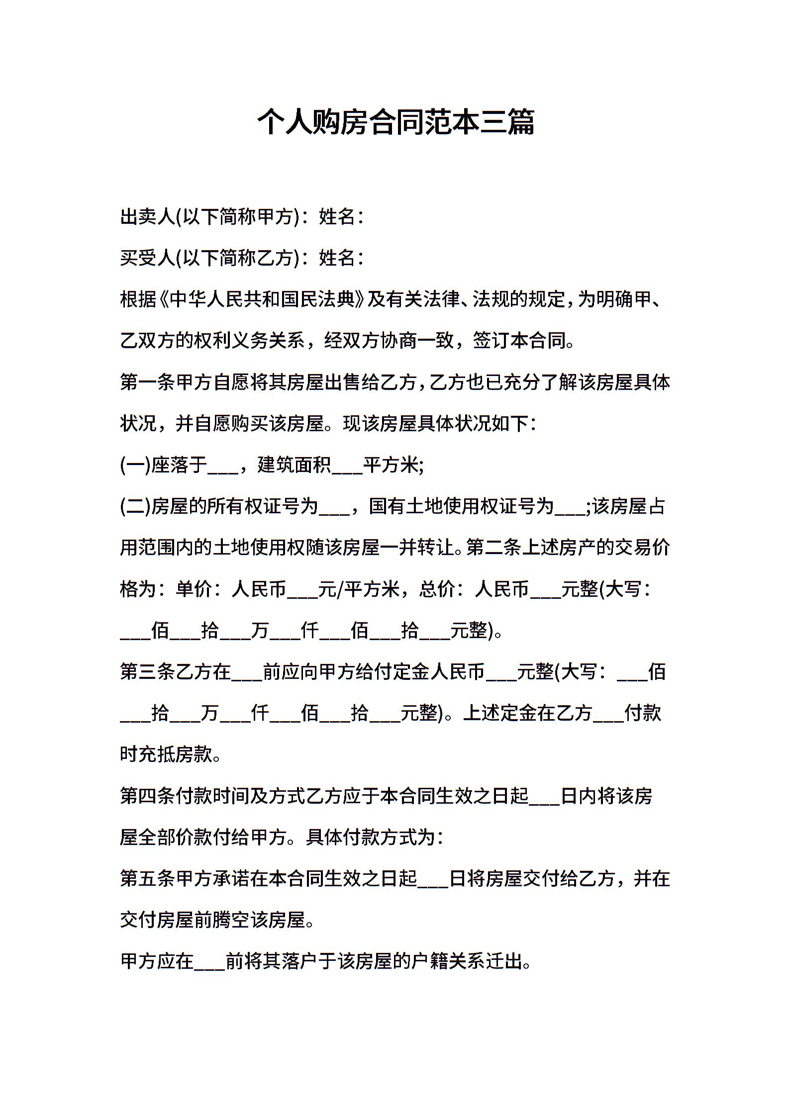 2021年个人购房合同范本三篇