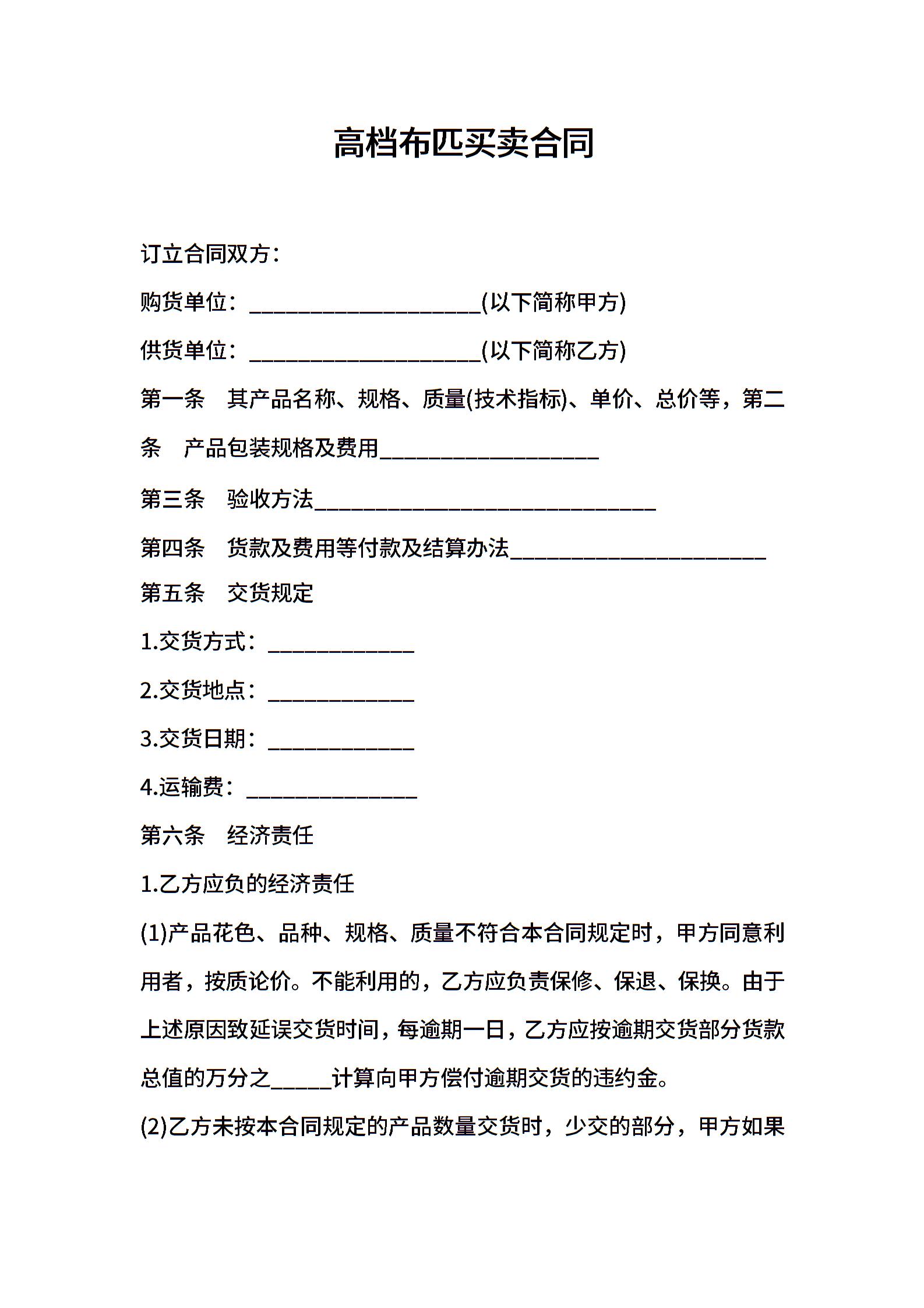 高档布匹买卖合同