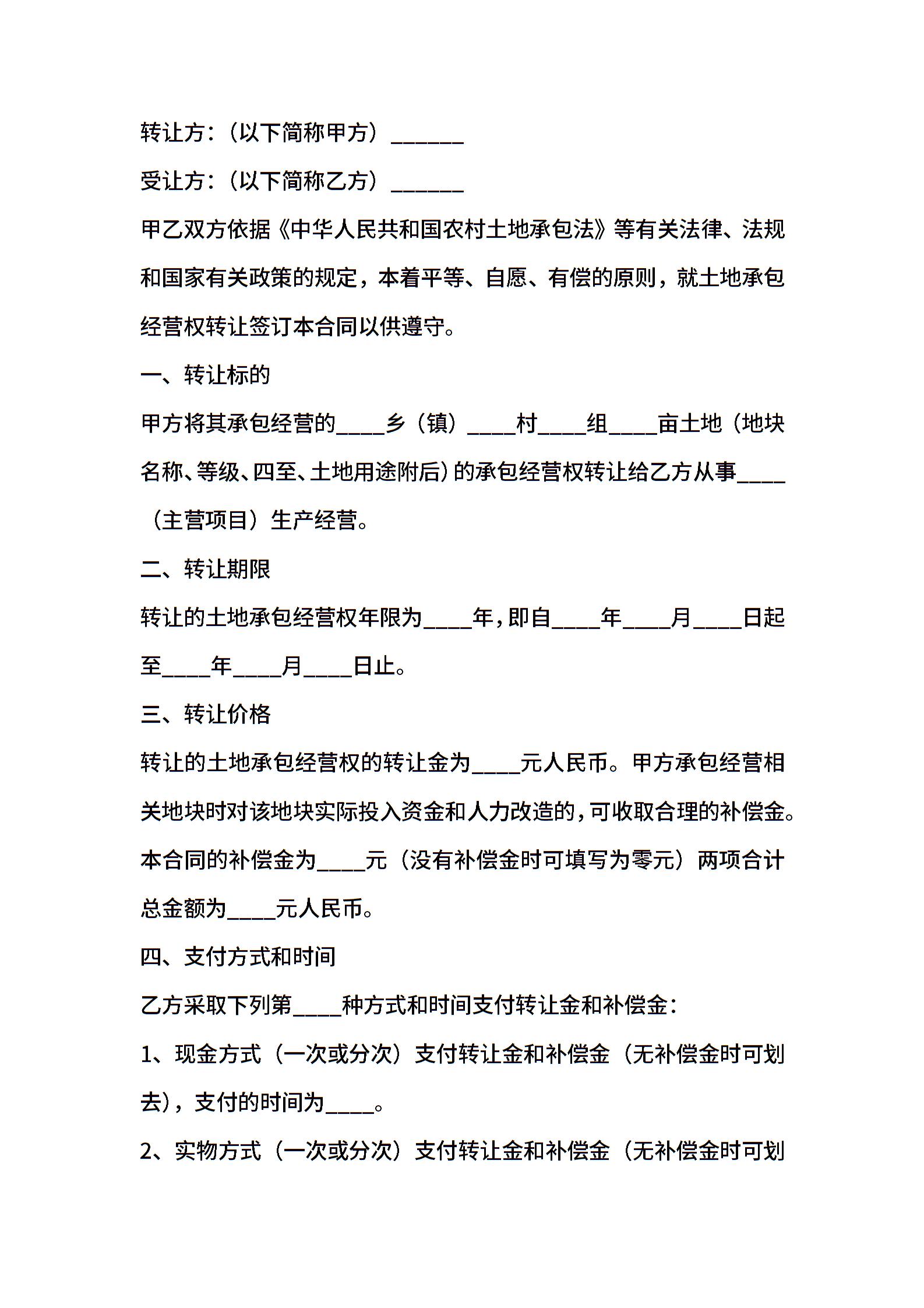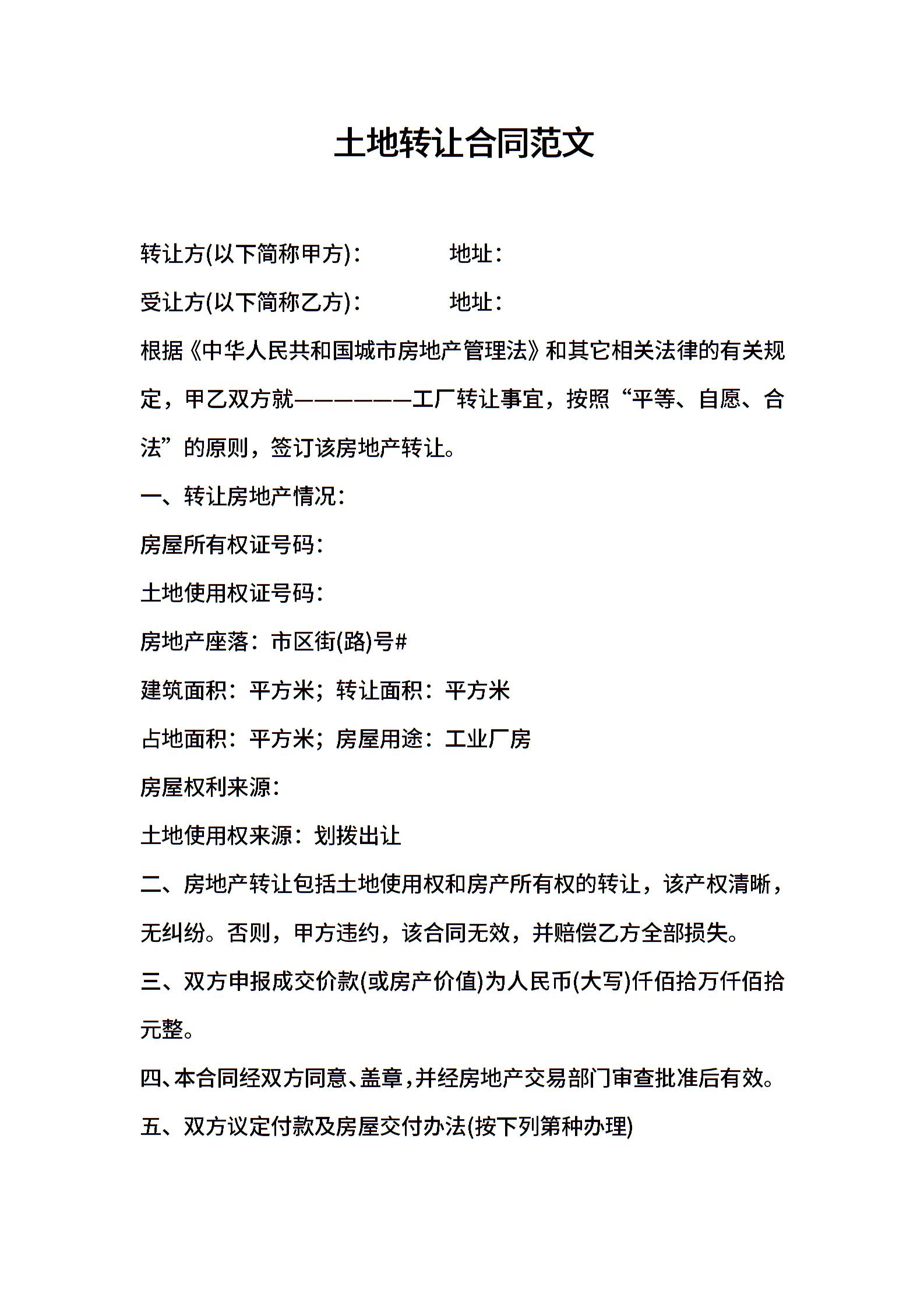 土地转让合同范文