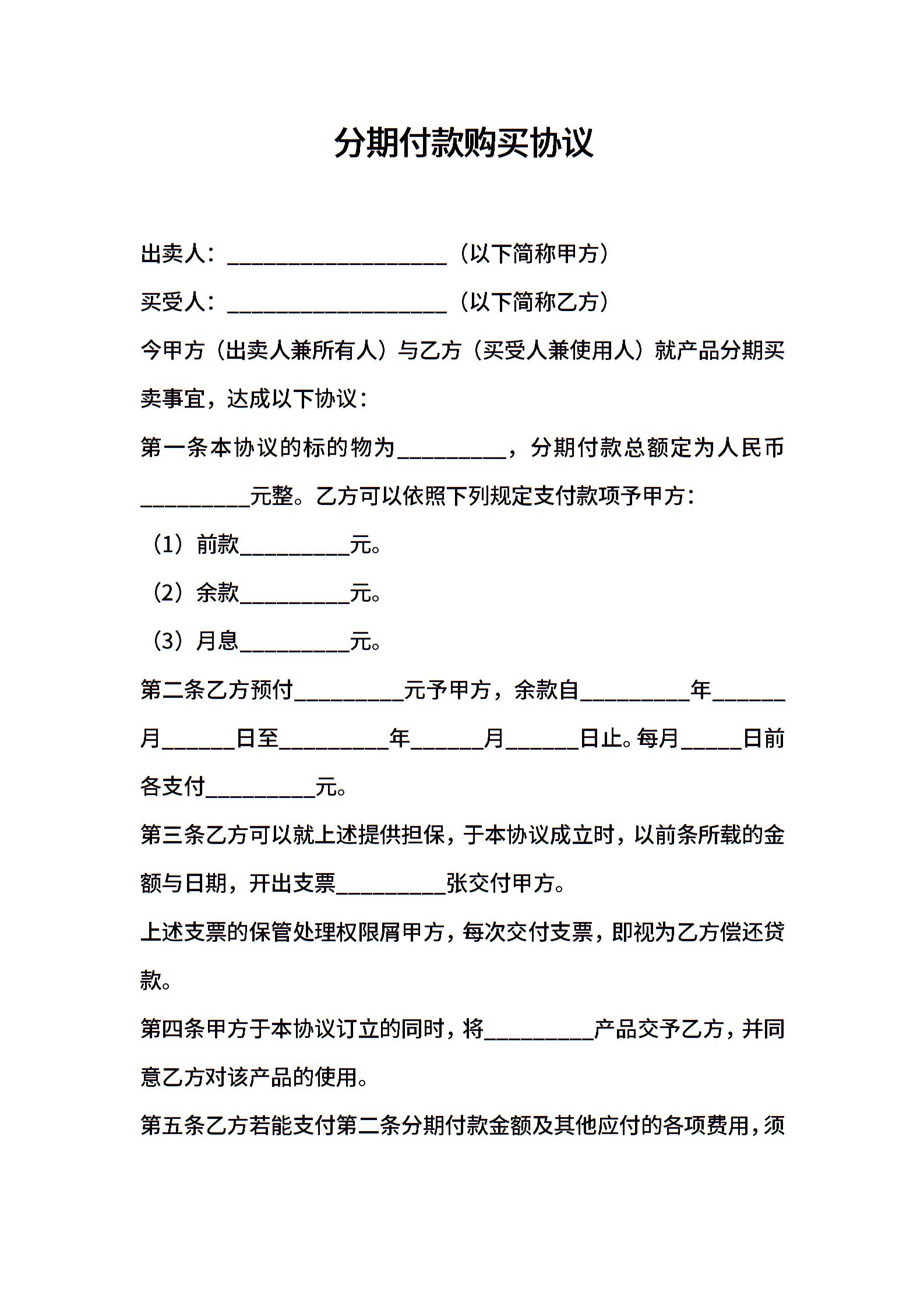 分期付款购买协议