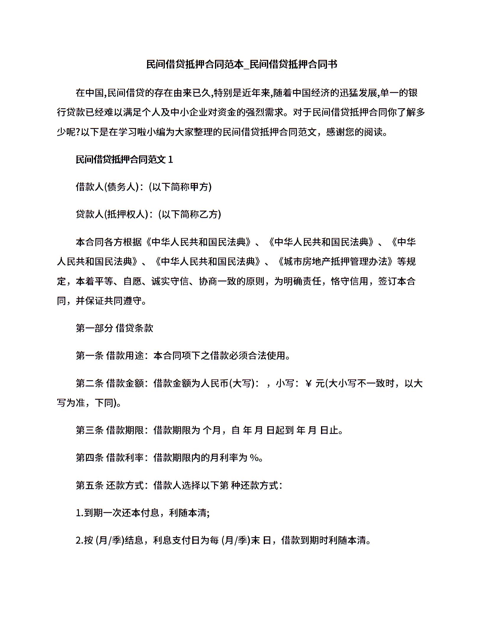民间借贷抵押合同范本_民间借贷抵押合同书.docx