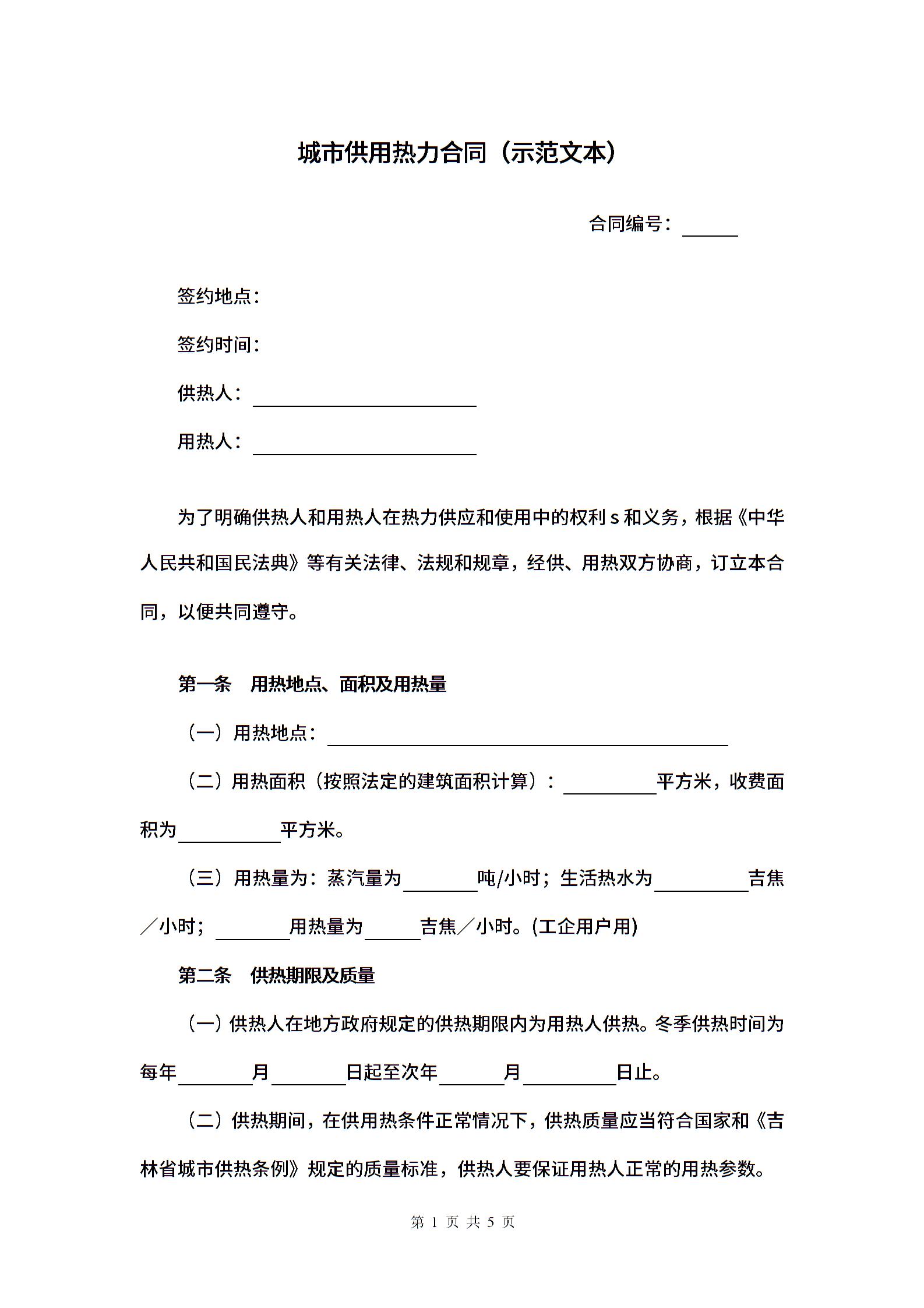 城市供用热力合同(示范文本).docx