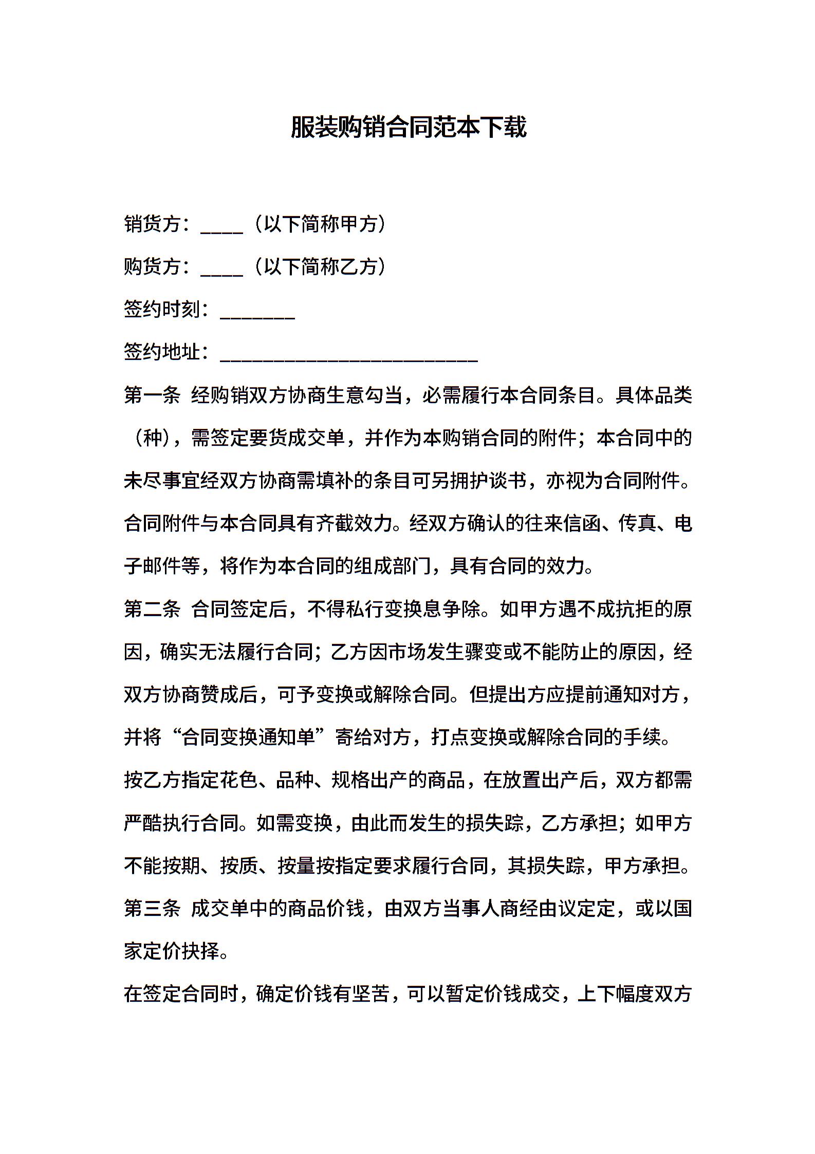 服装购销合同范本下载