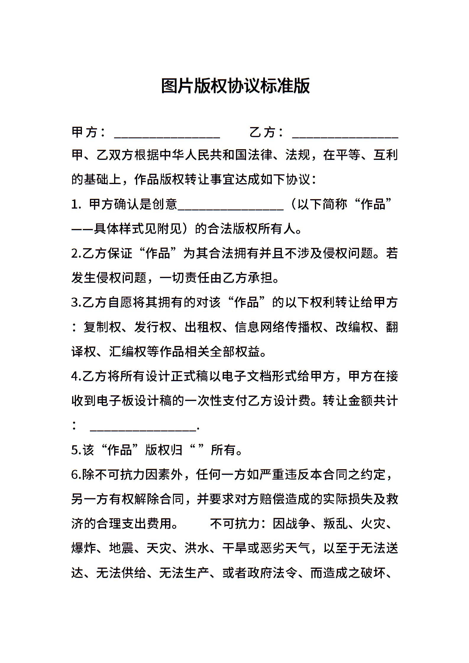 图片版权协议标准版