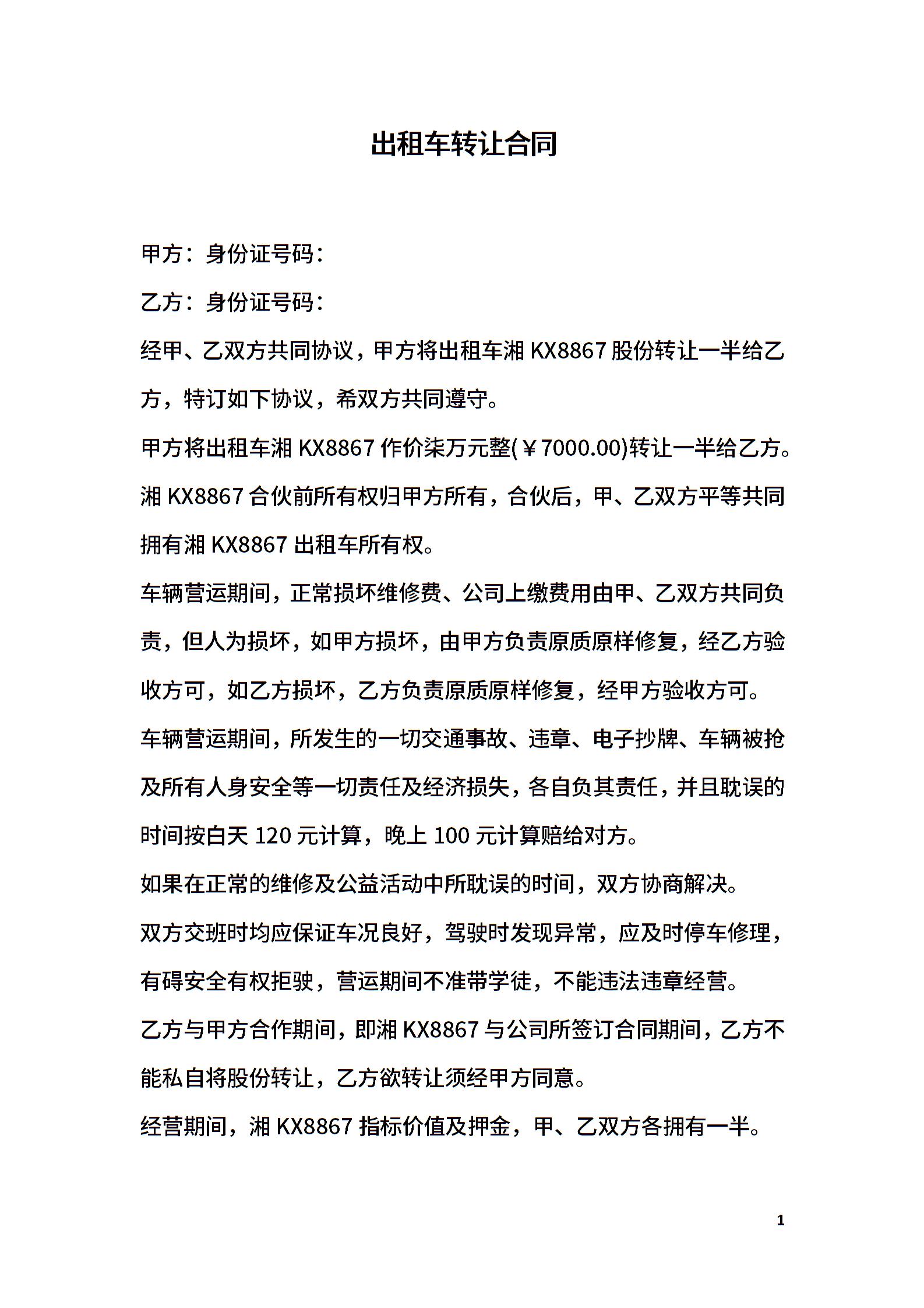 当前位置:量子办公 > 合同模板 > 转让合同 >