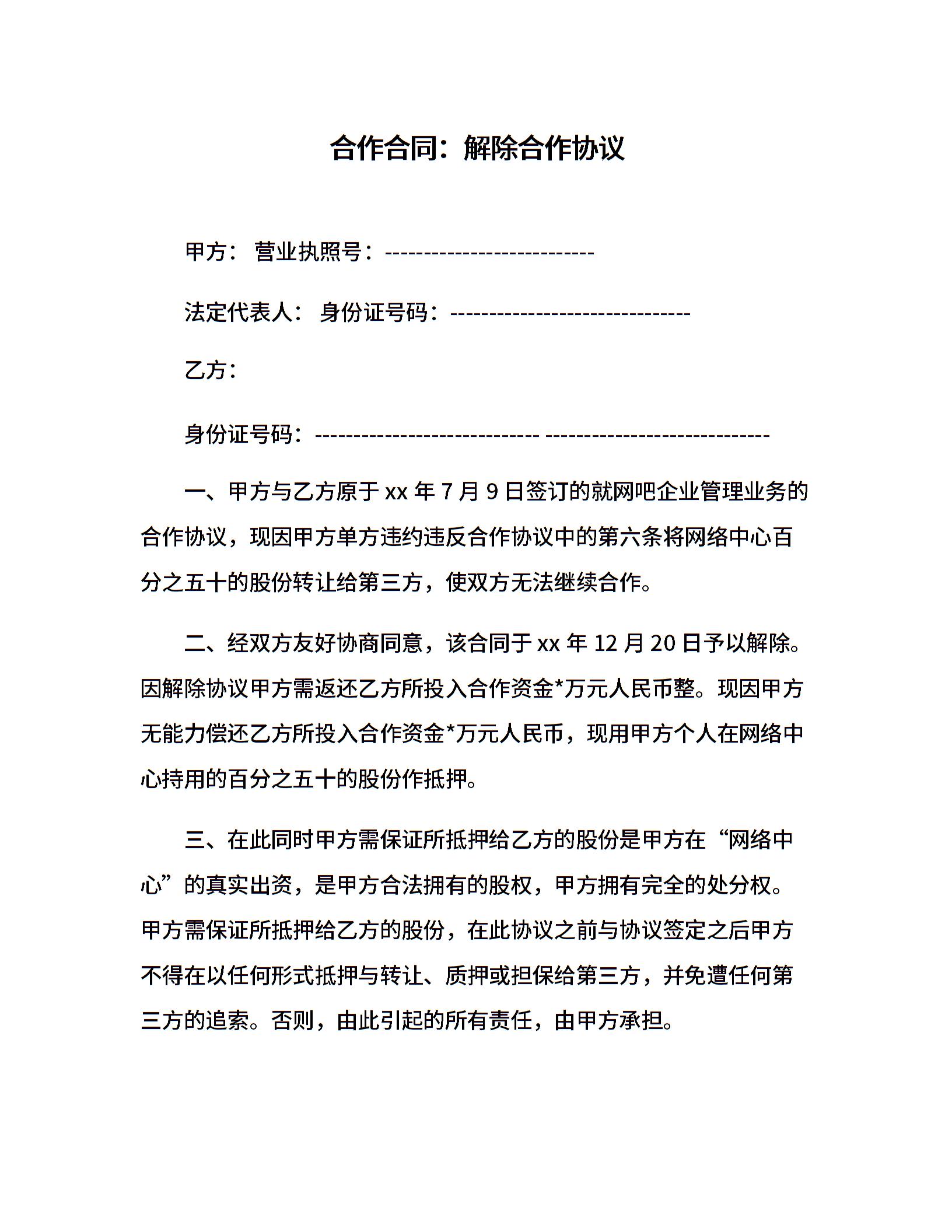 当前位置:量子办公 > 合同模板 > 合作合同 >