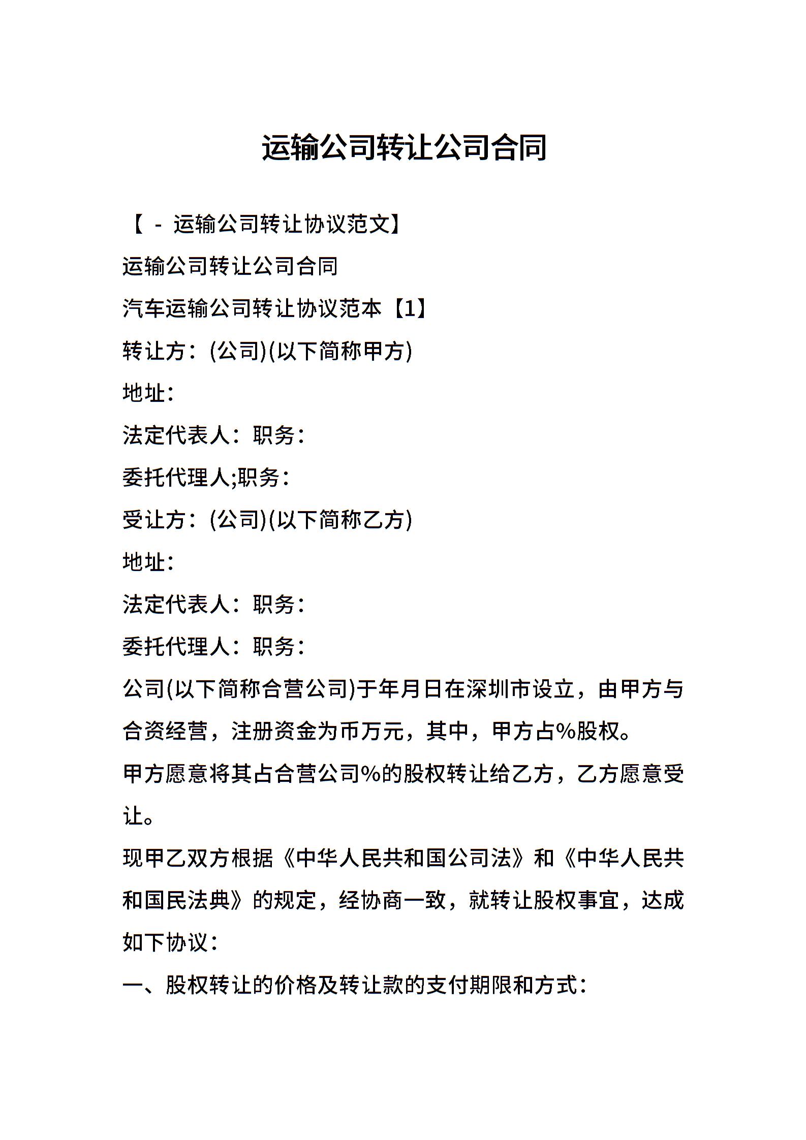运输公司转让公司合同