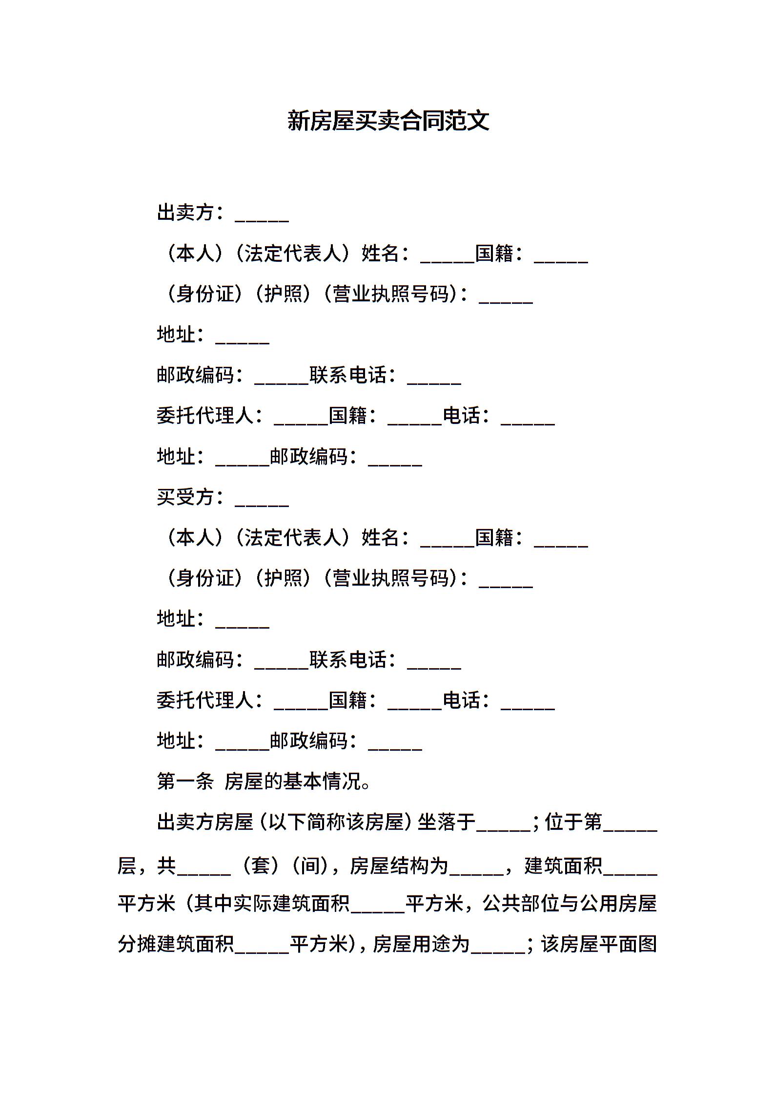 新房屋买卖合同范文