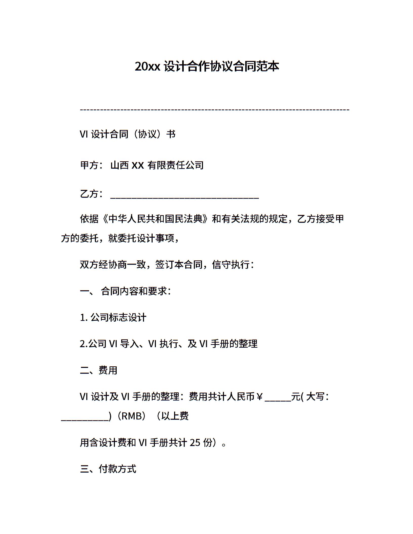 20xx设计合作协议合同范本