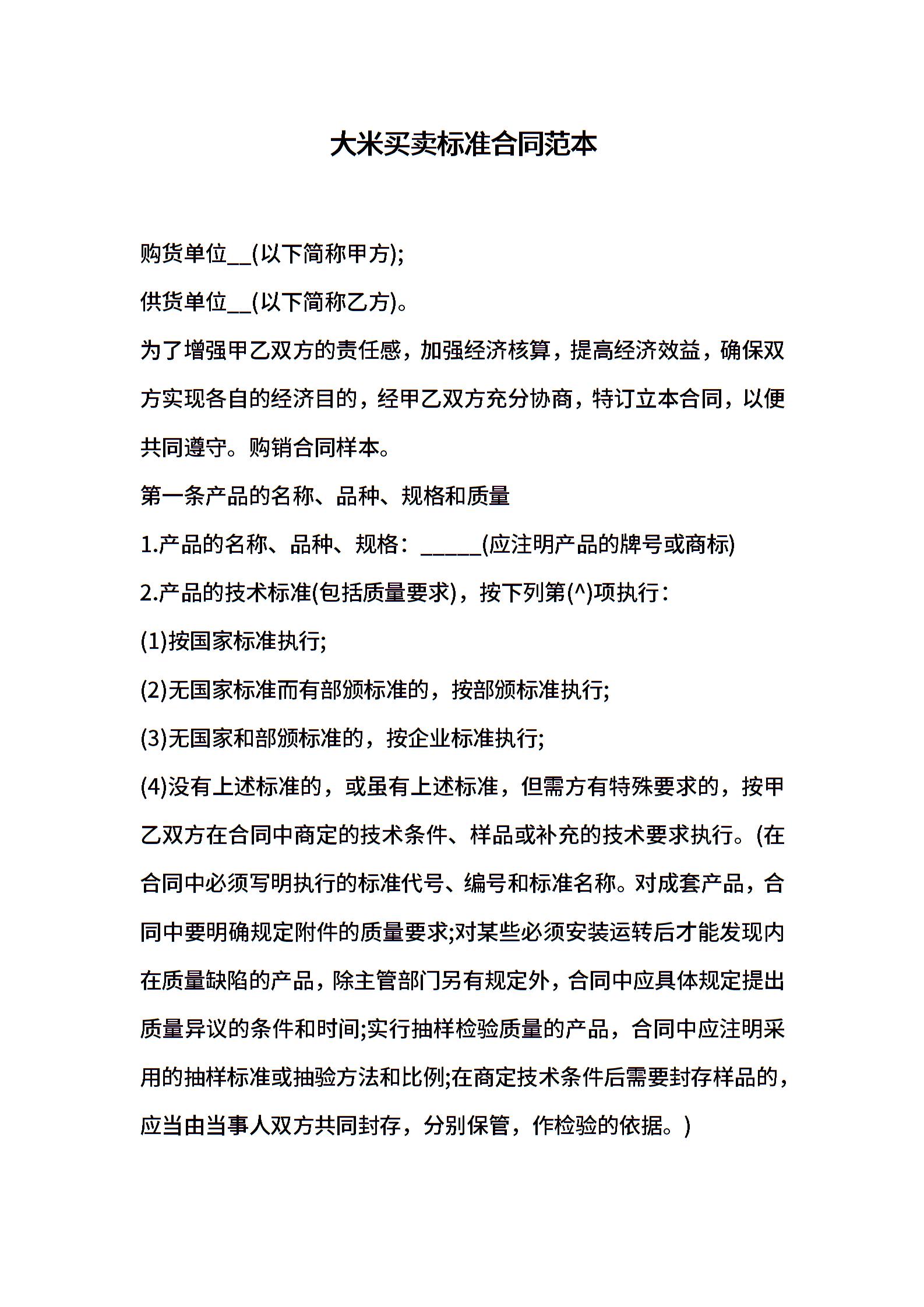 大米买卖标准合同范本