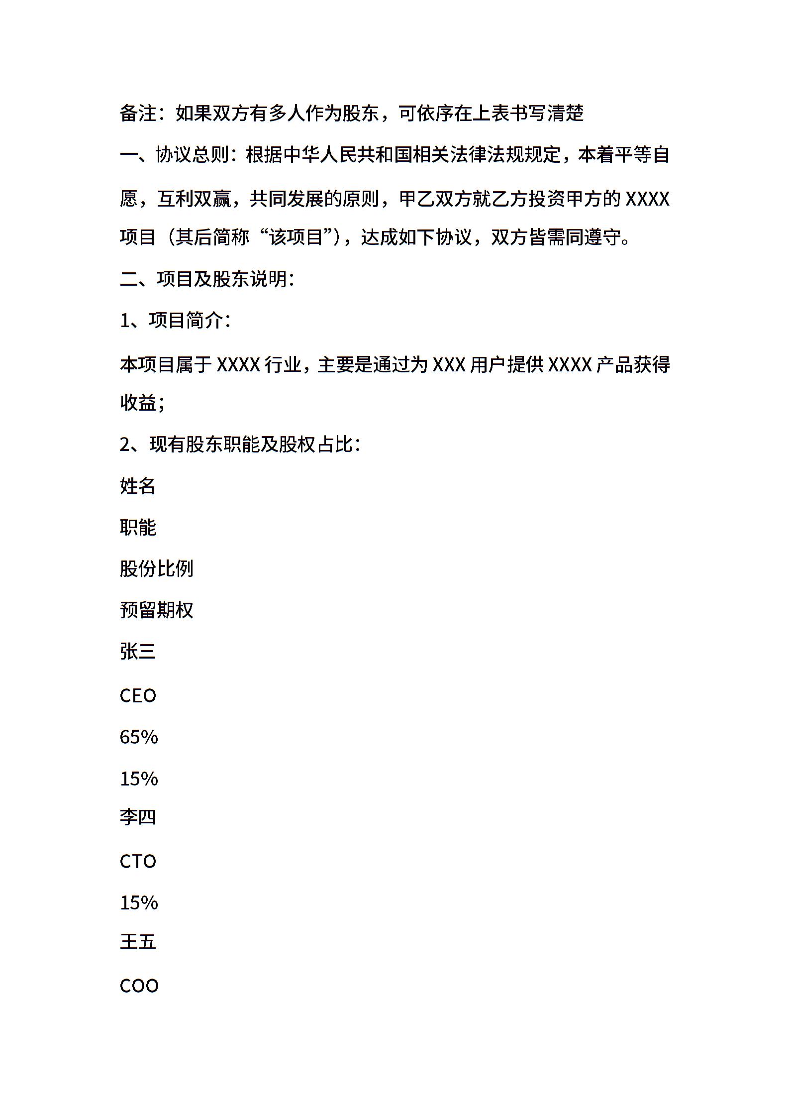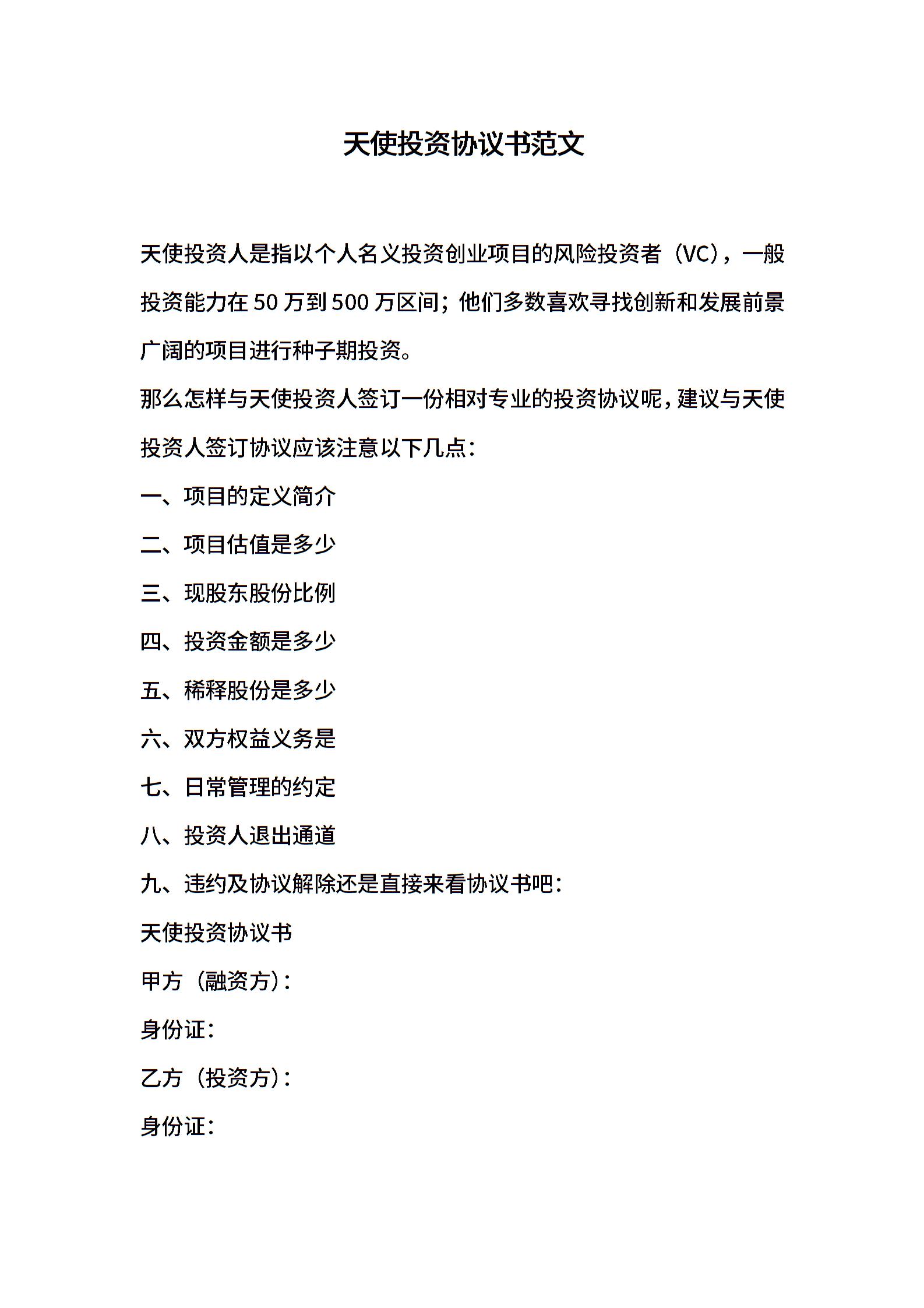 天使投资协议书范文