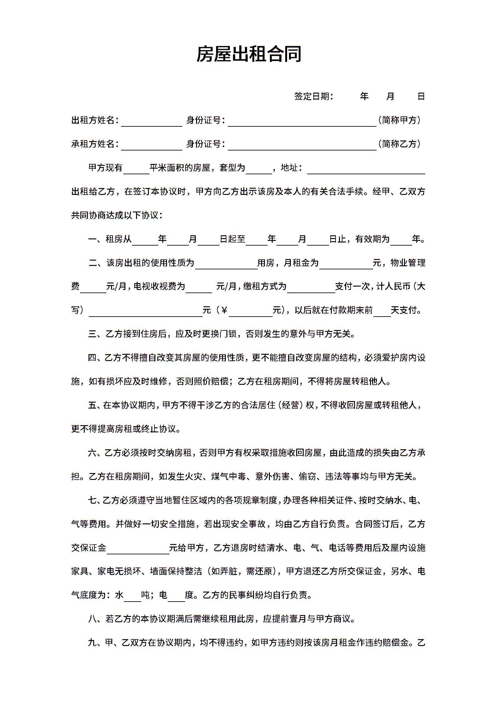 房屋出租合同模版.docx