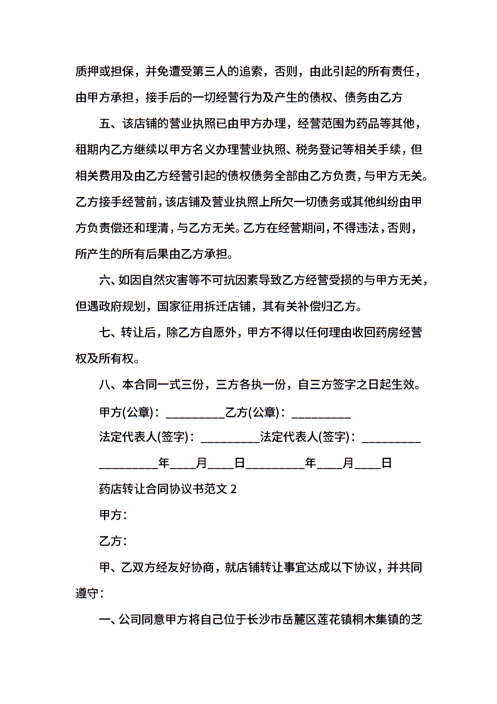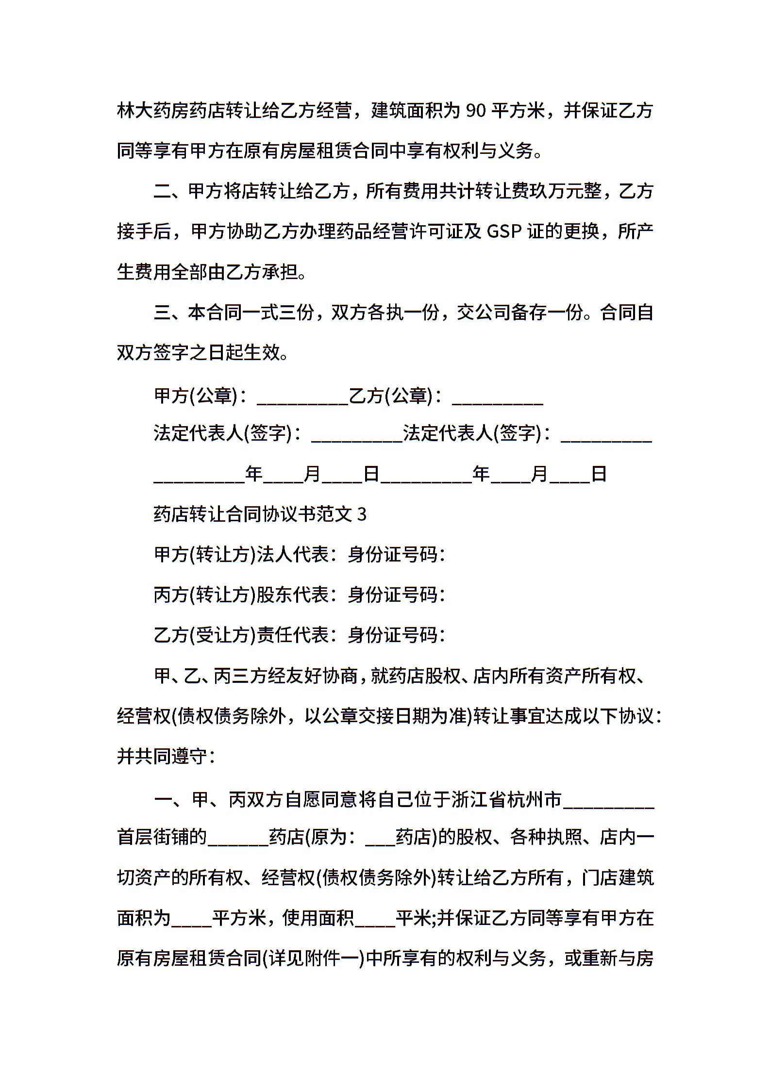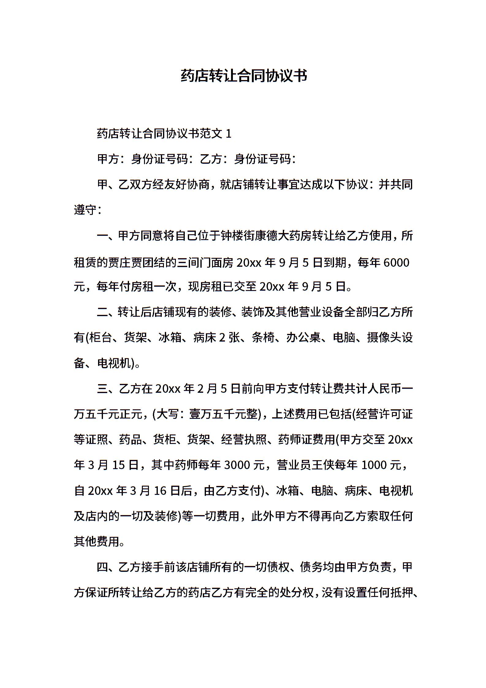 药店转让合同协议书