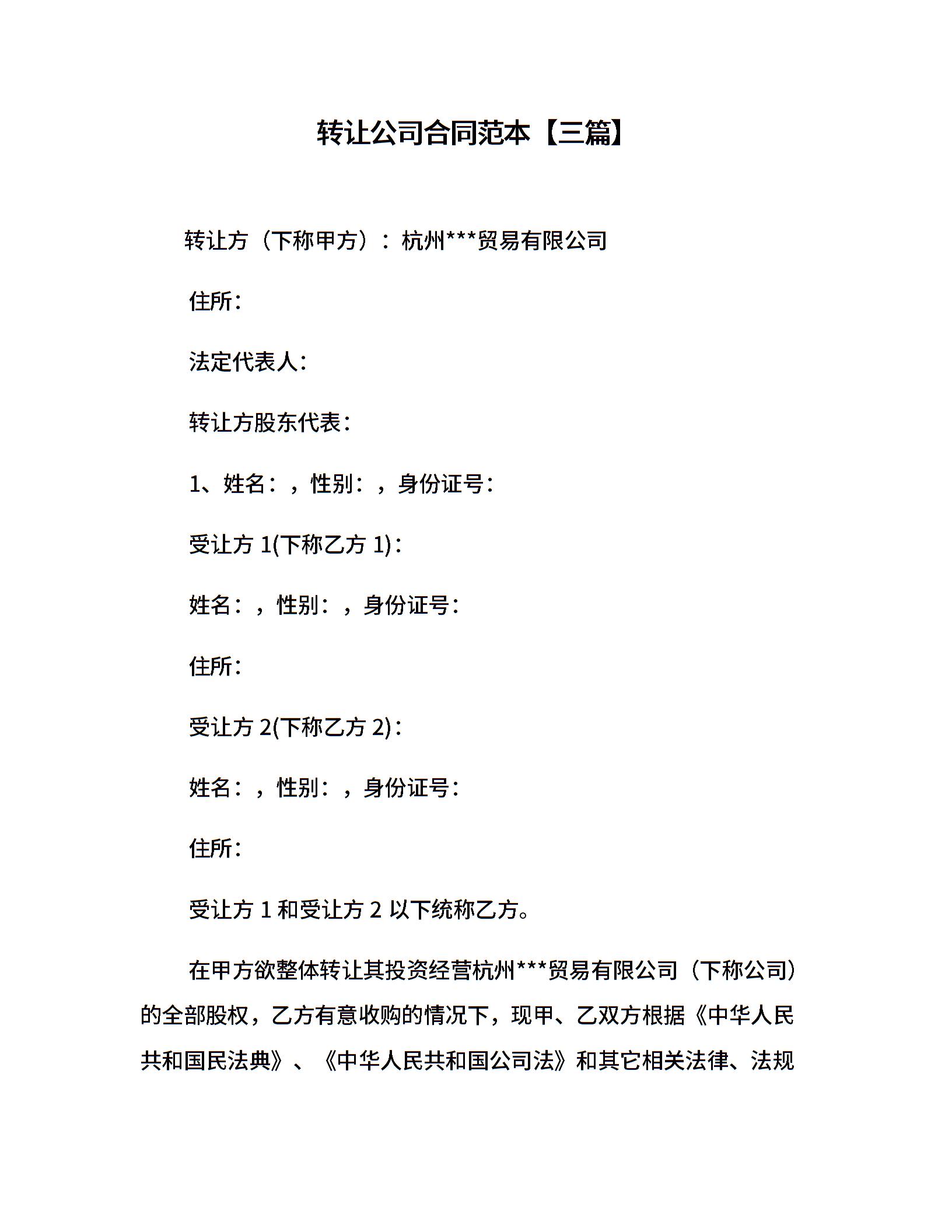 转让公司合同范本【三篇】.doc