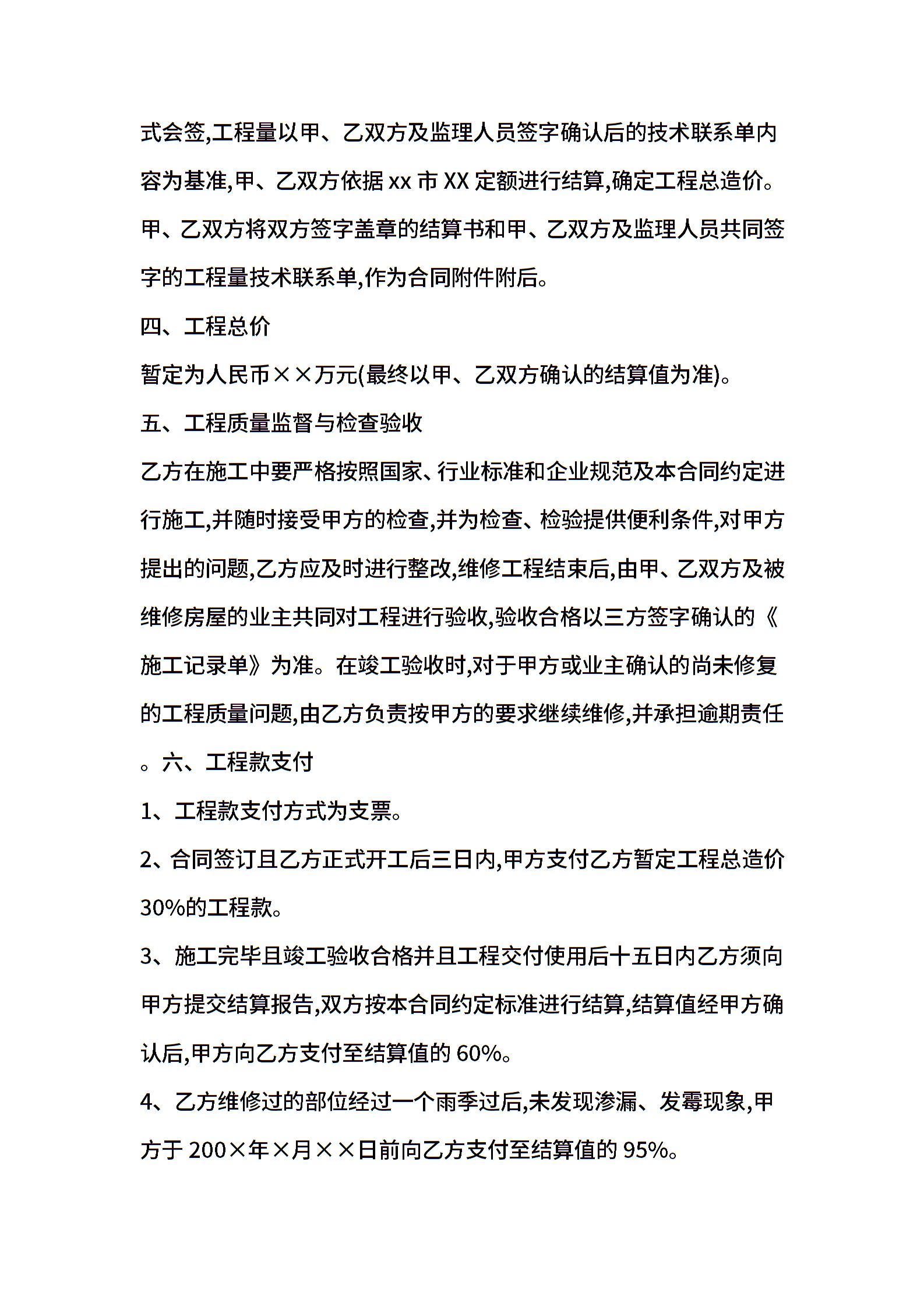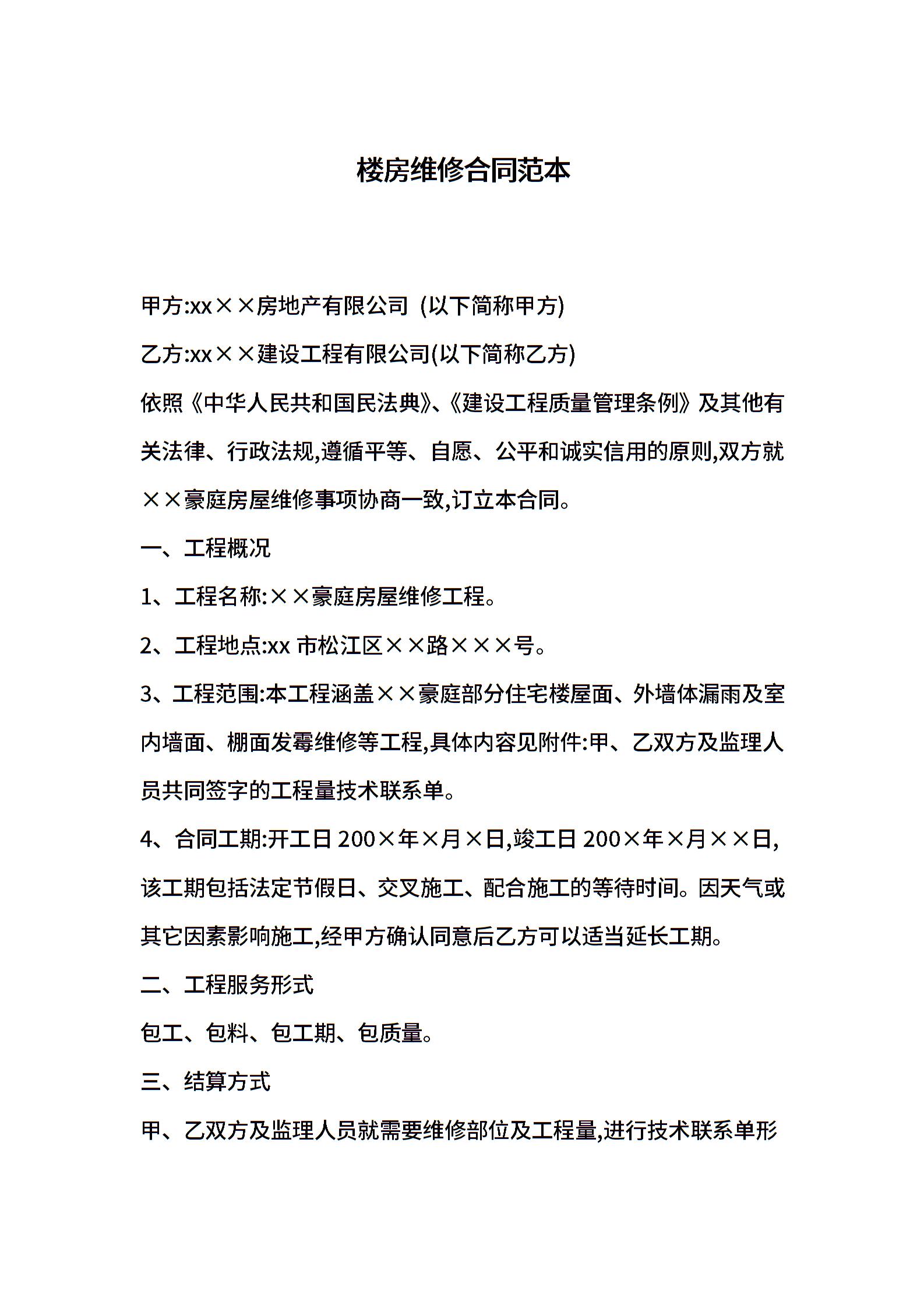 楼房维修合同范本_合同范本