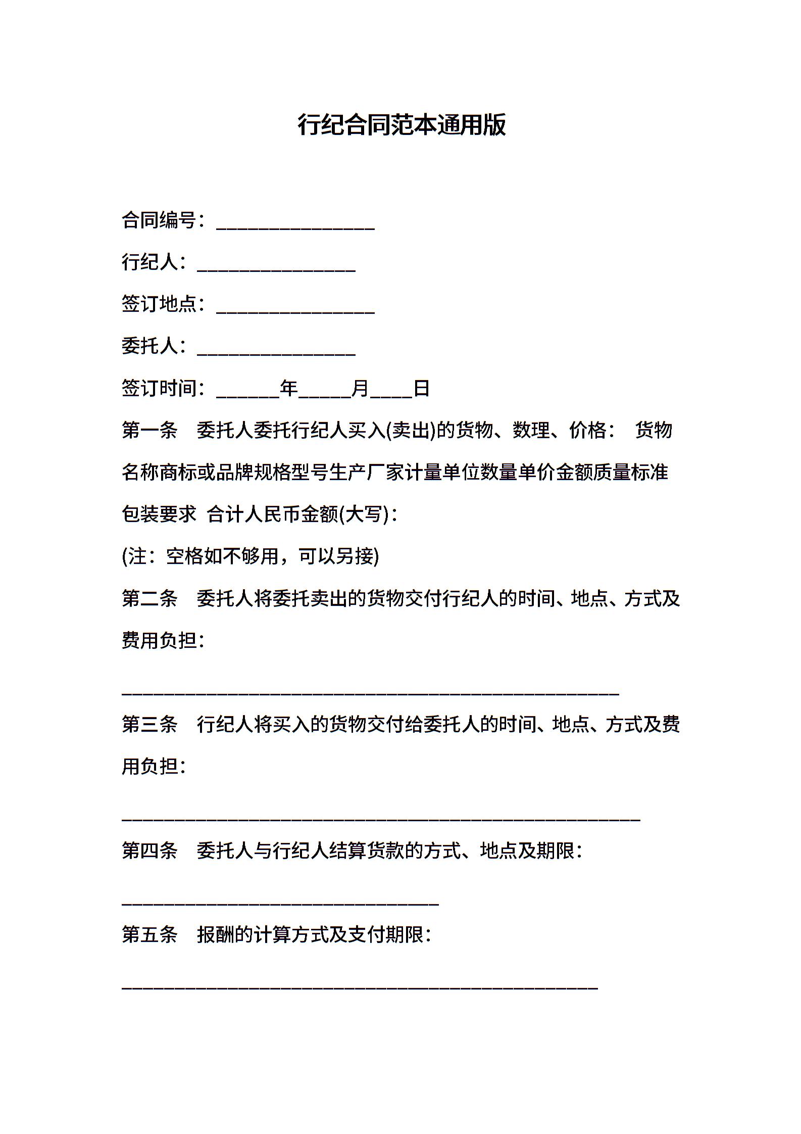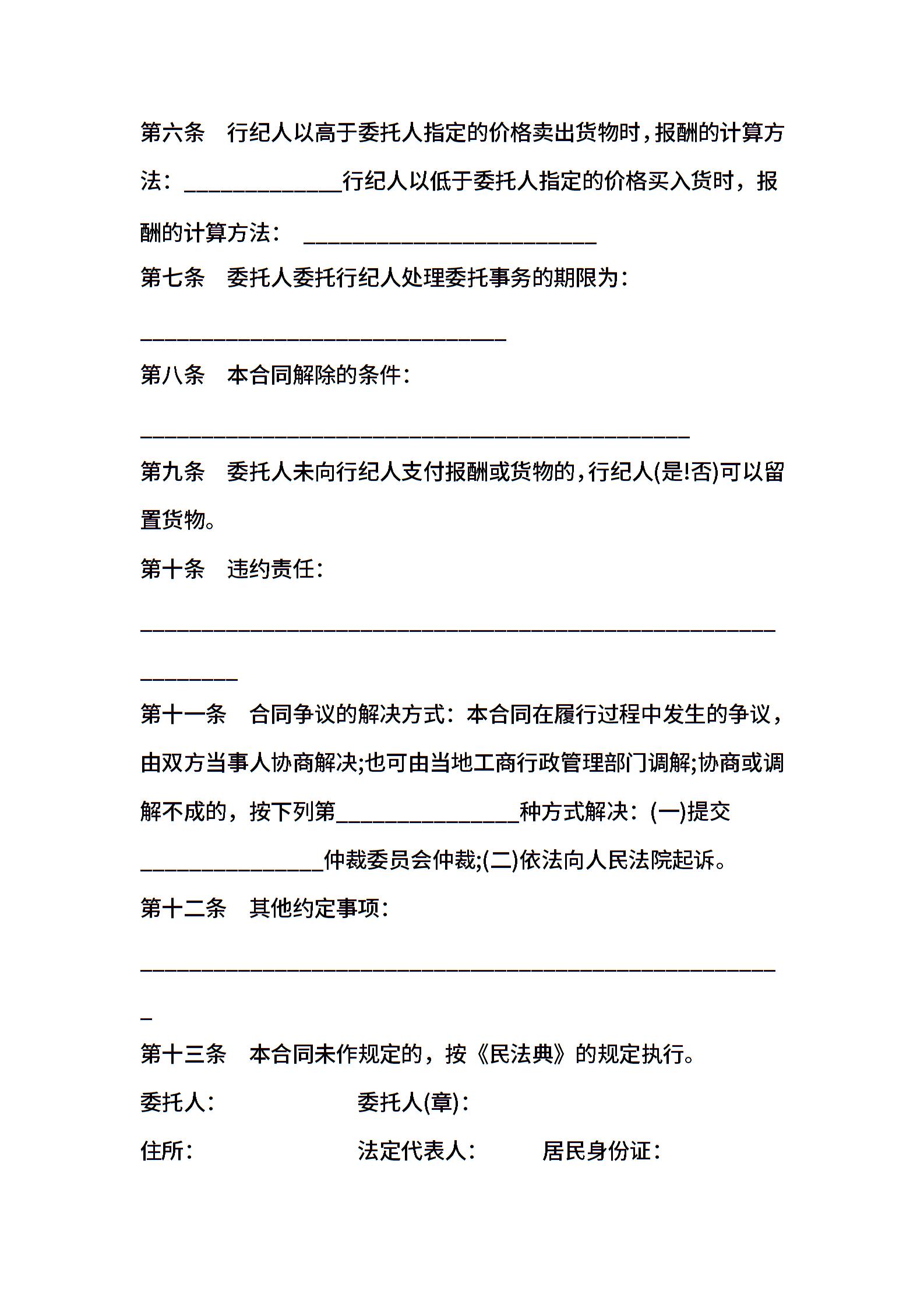 行纪合同范本通用版