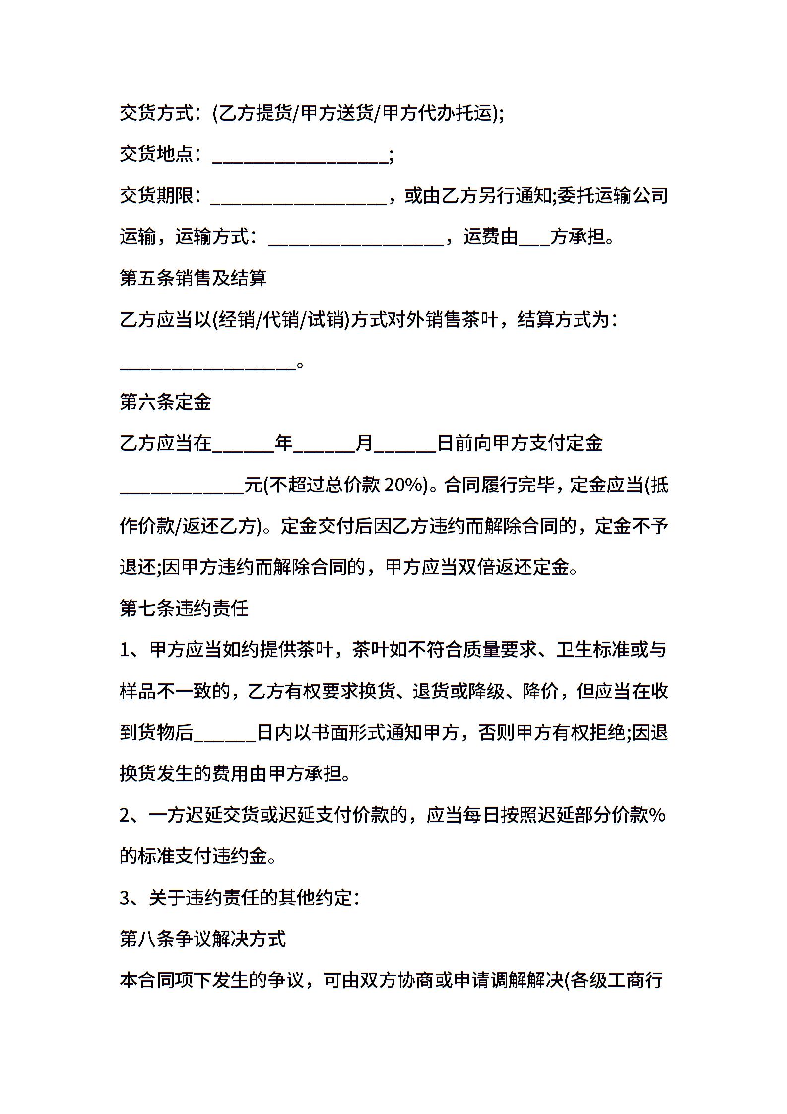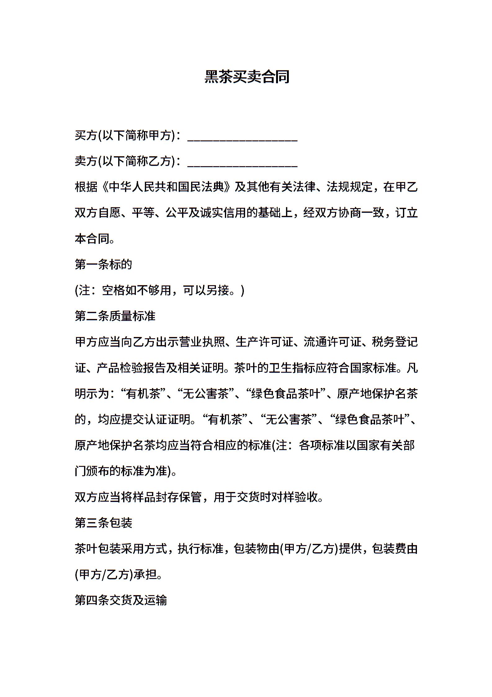 黑茶买卖合同