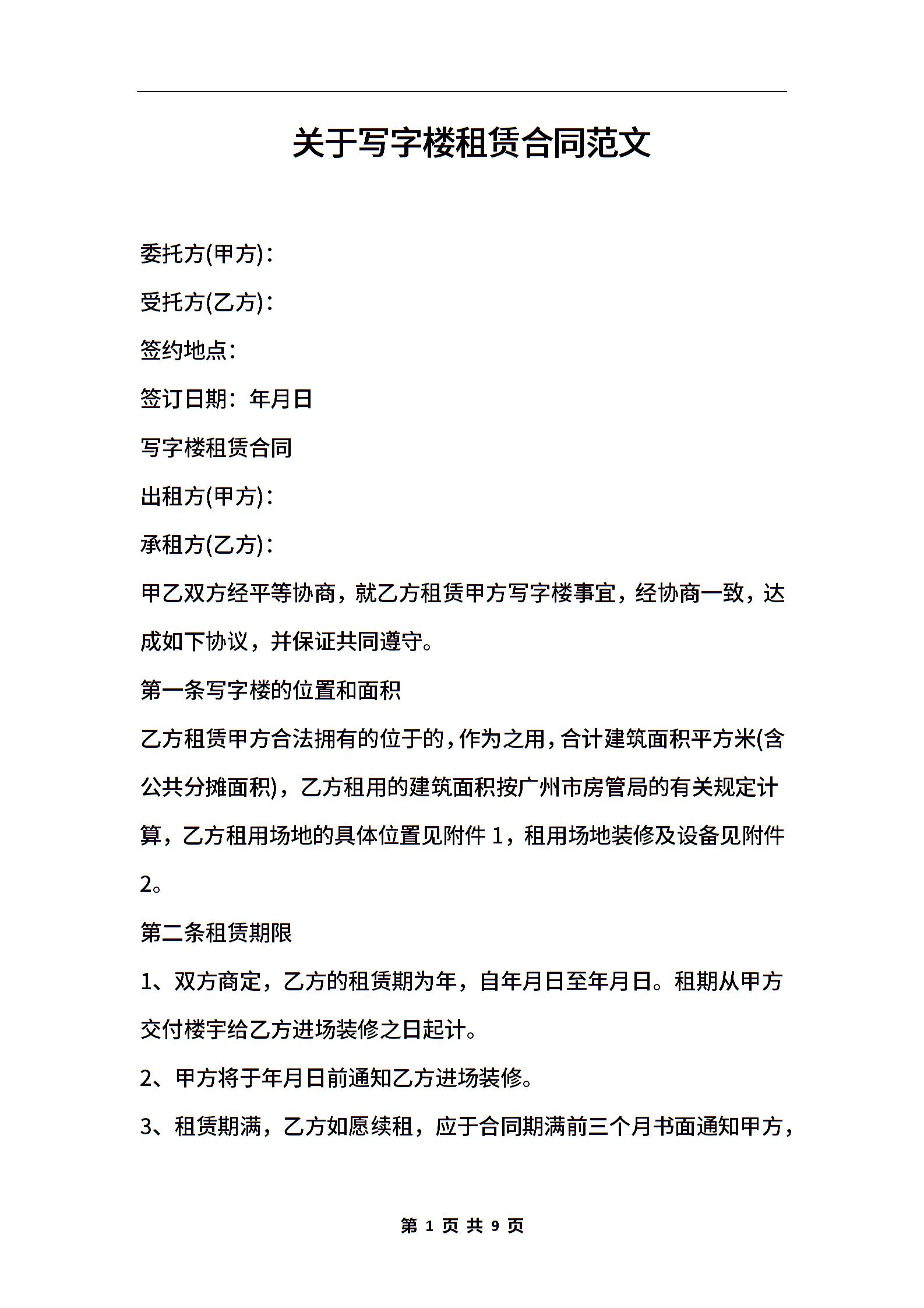 当前位置:量子办公 > 合同模板 > 房屋租赁 >