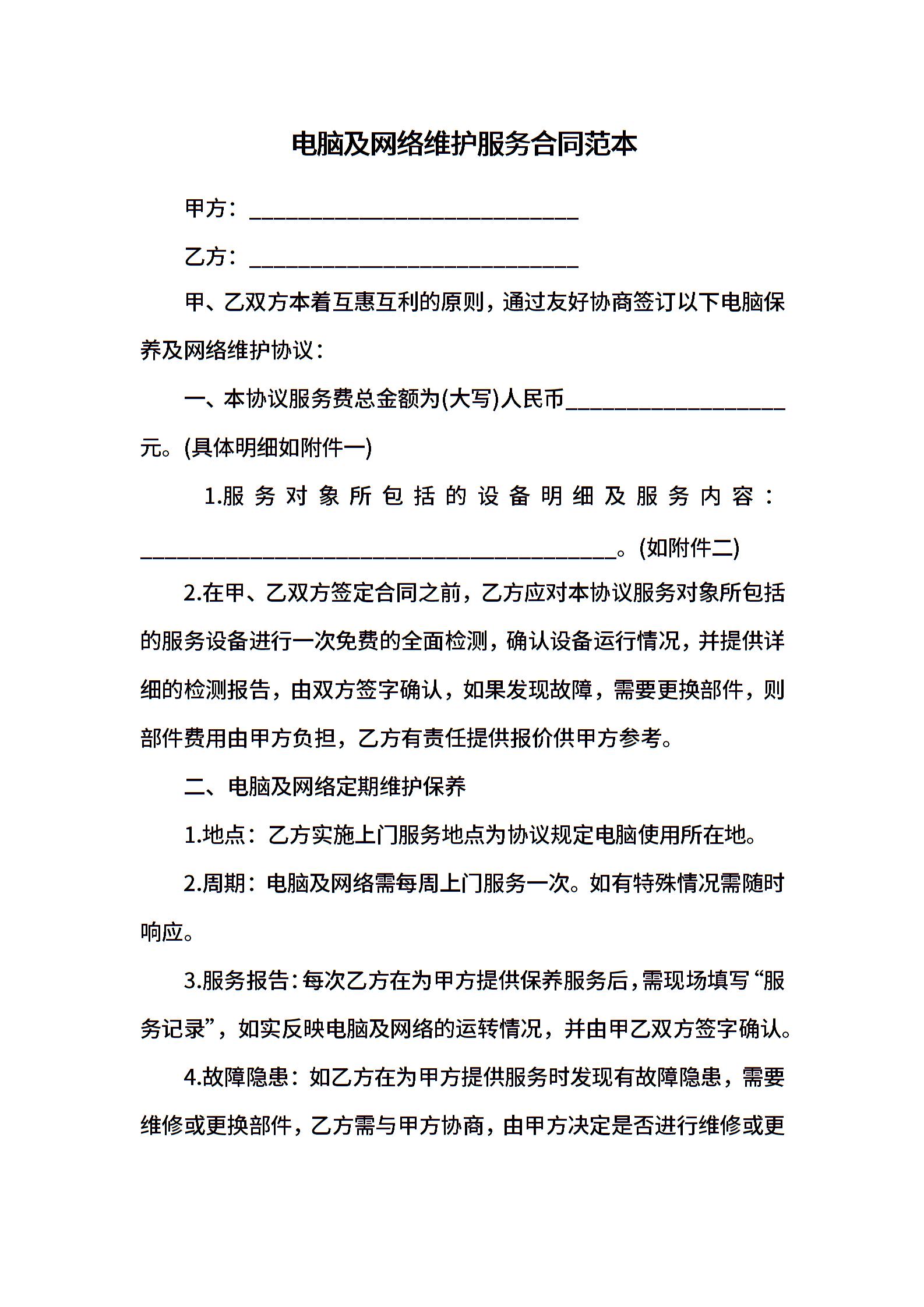 电脑及网络维护服务合同范本
