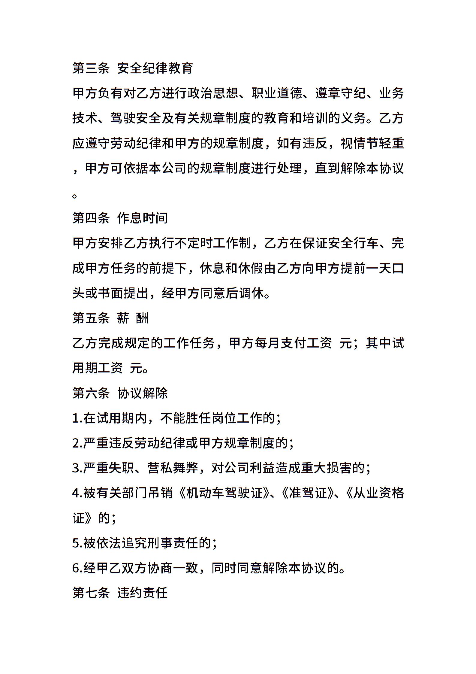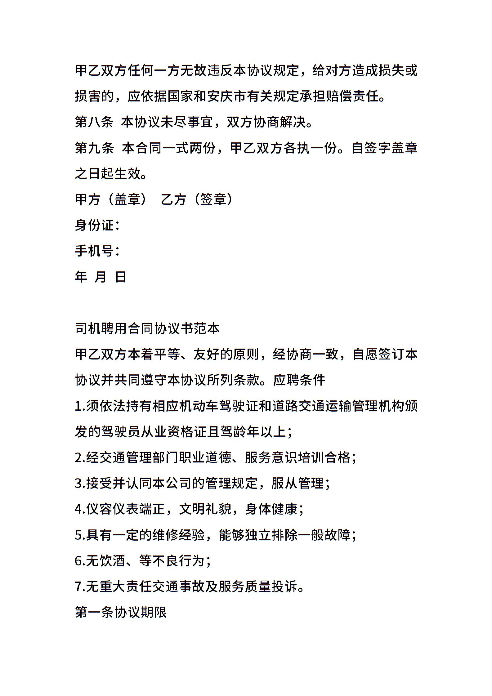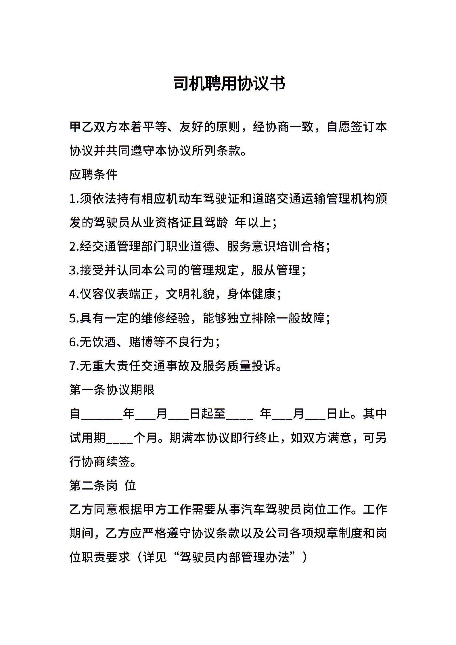 司机聘用协议书
