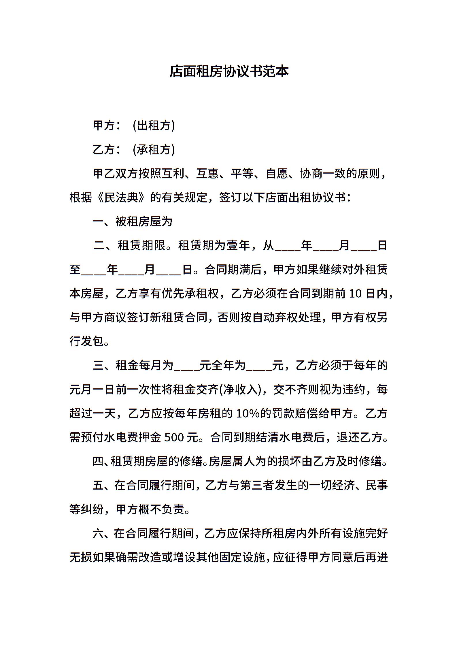 店面租房协议书范本