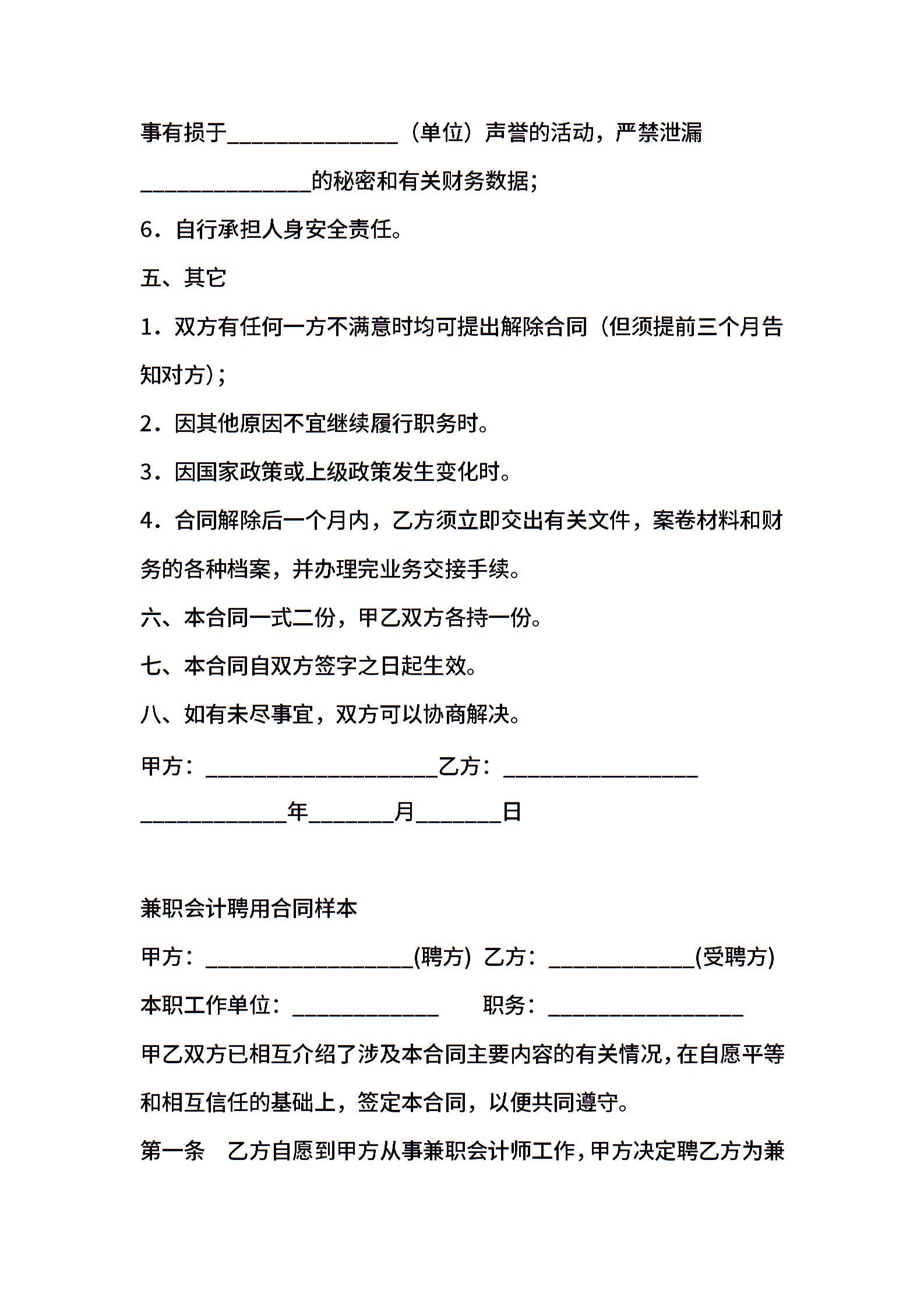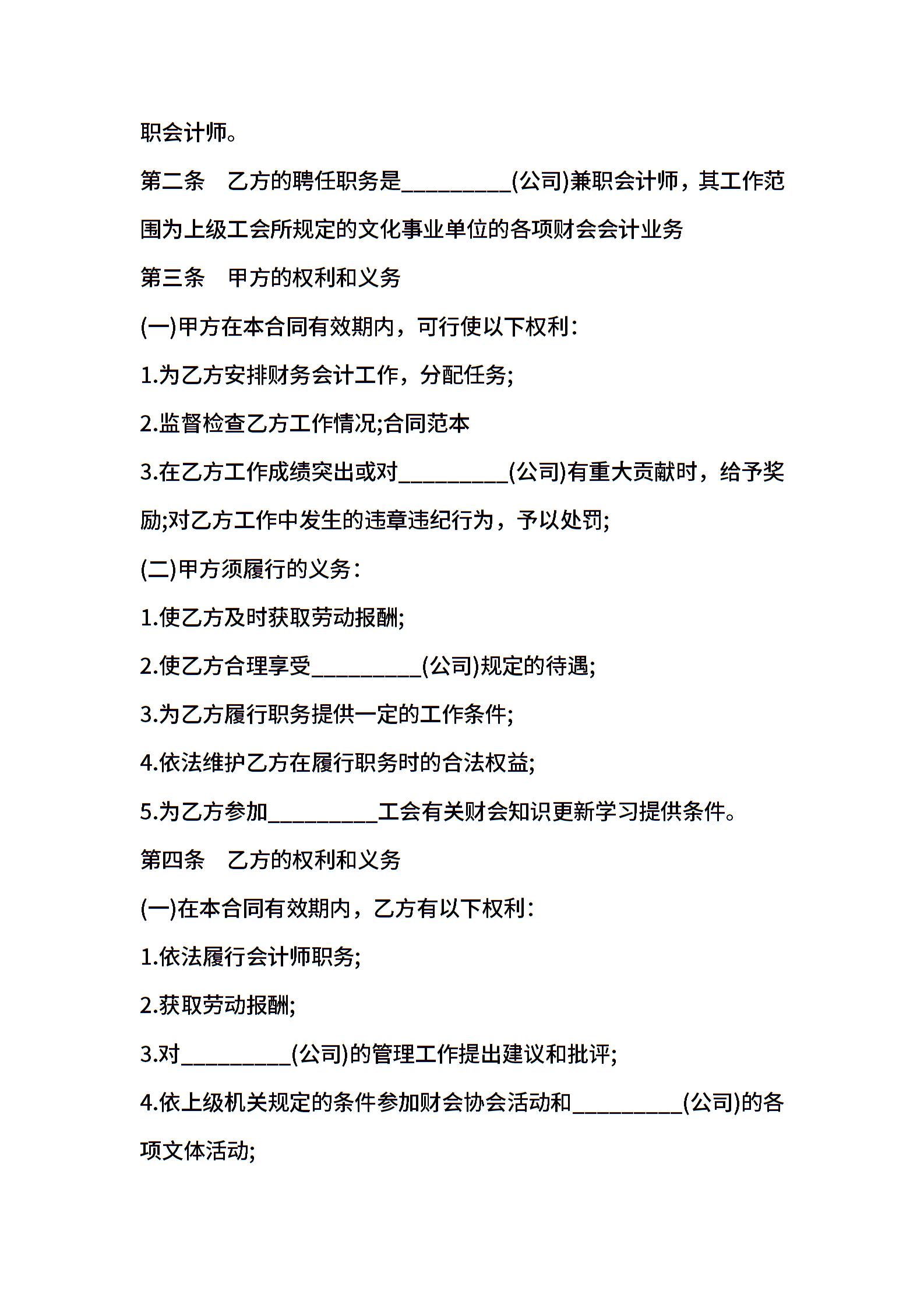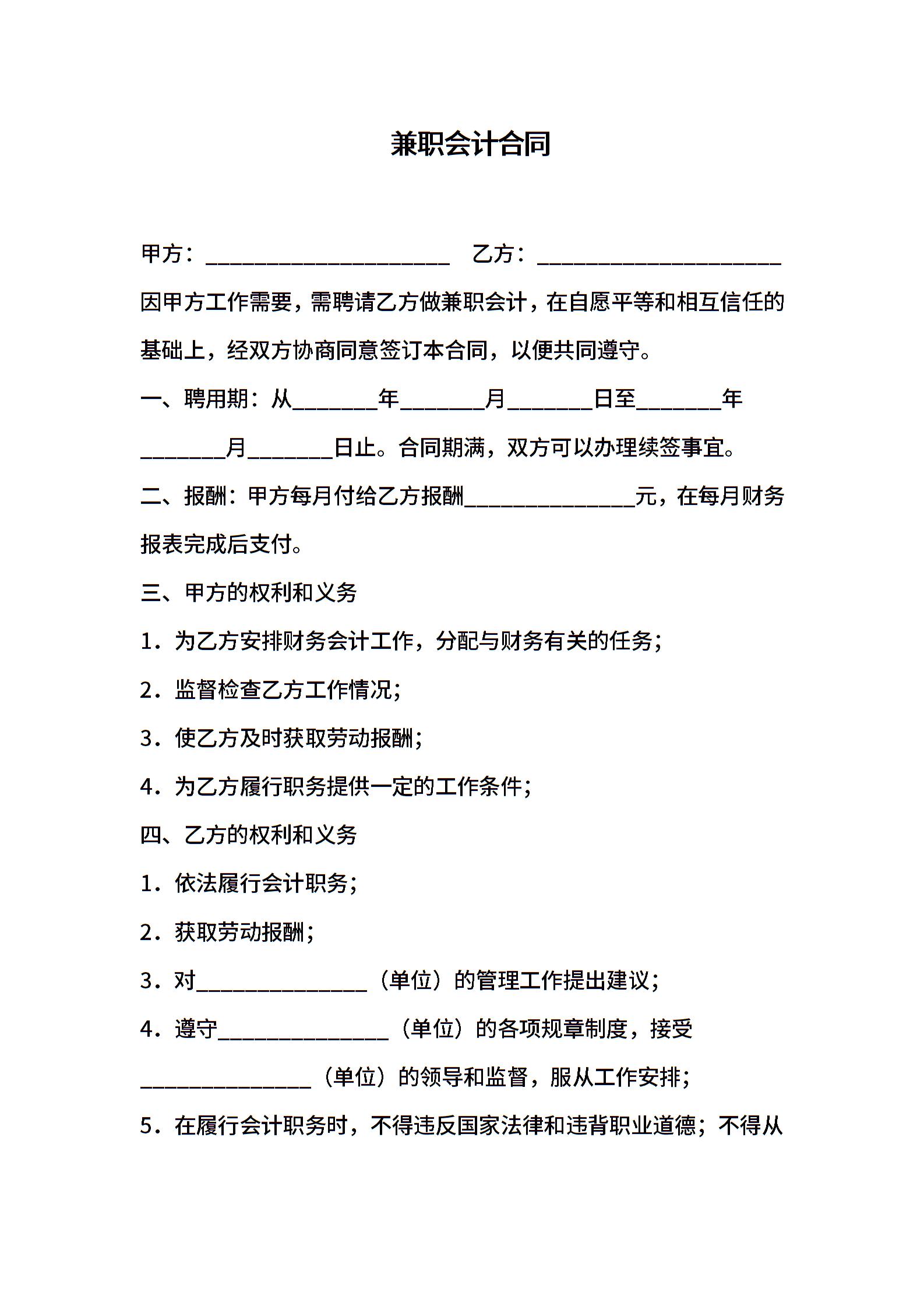 合同样本 兼职会计合同