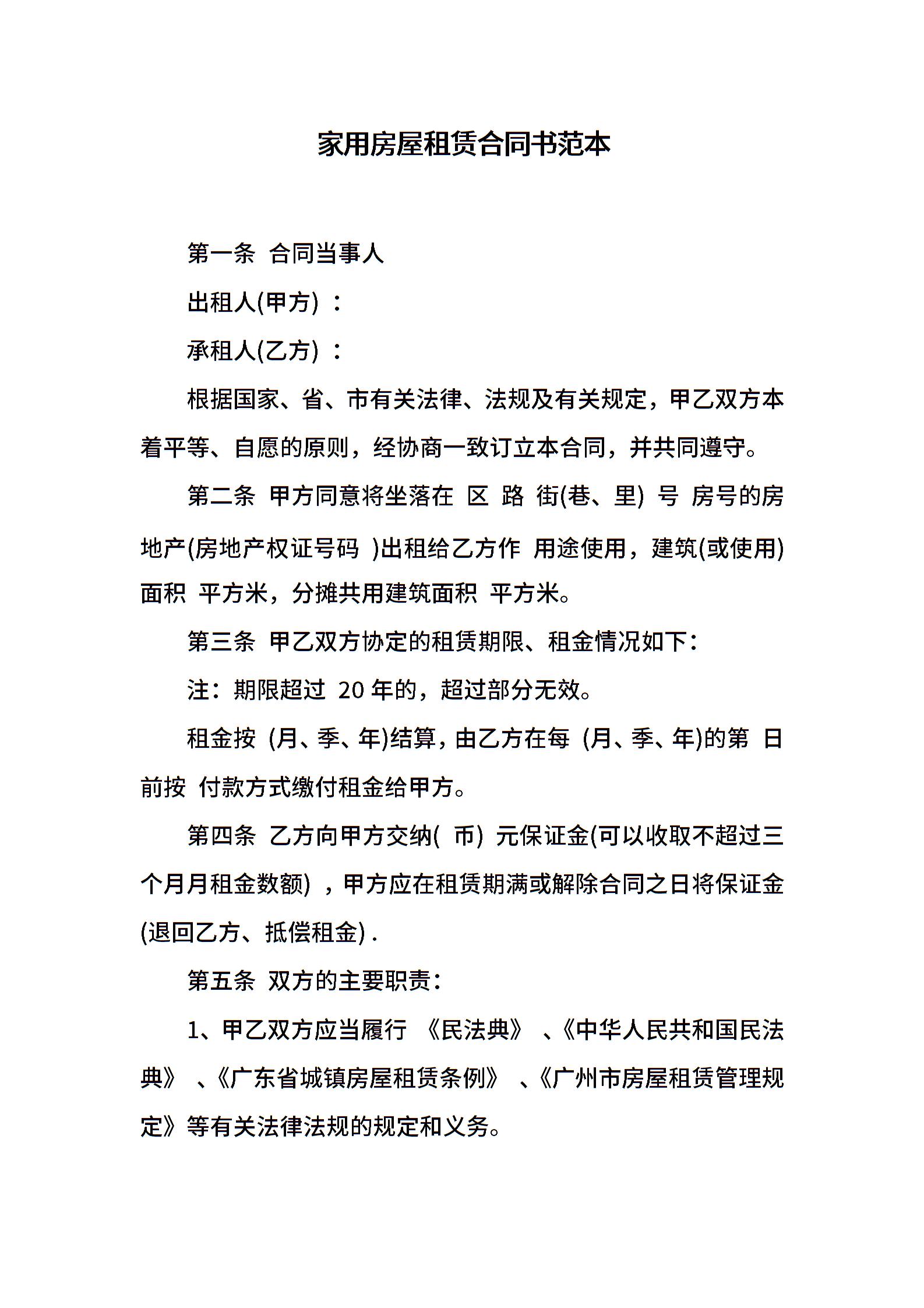 家用房屋租赁合同书范本